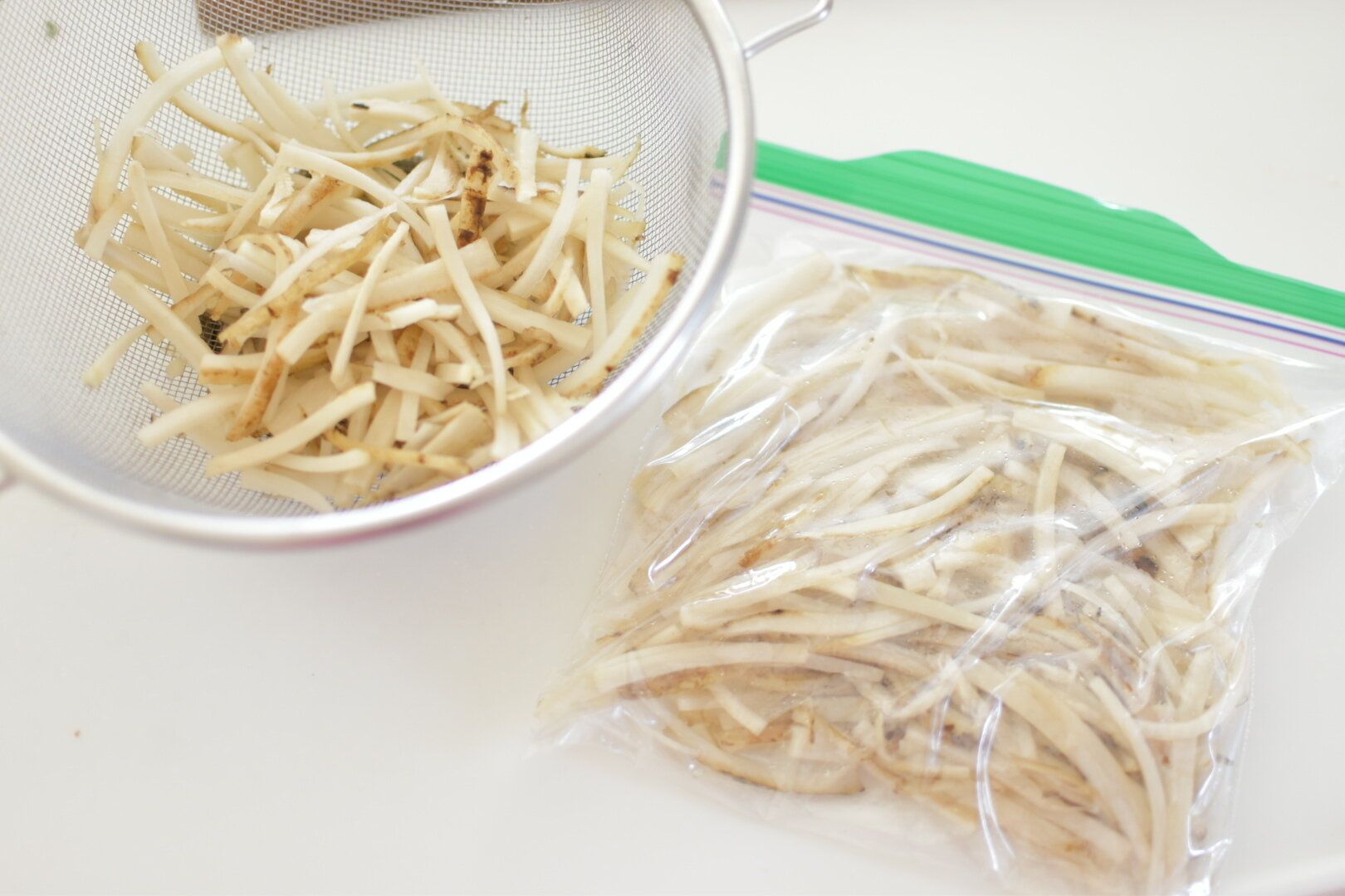ごぼうは茹でて冷凍しておくと、使いたい時にすぐ使えて便利です。