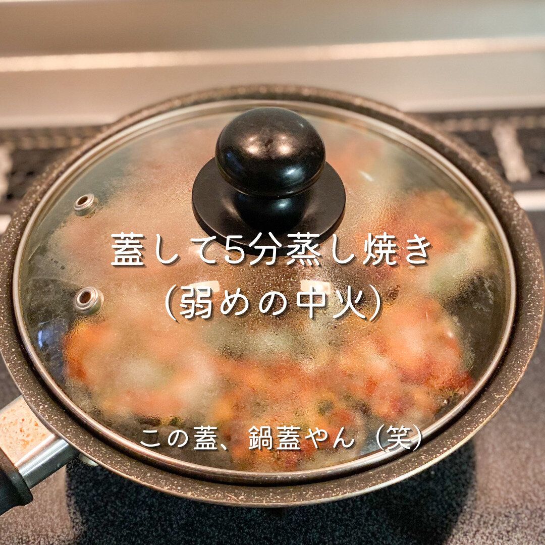 片面に焼き色がついたら裏返し、蓋をして弱めの中火で5分蒸し焼きにします。