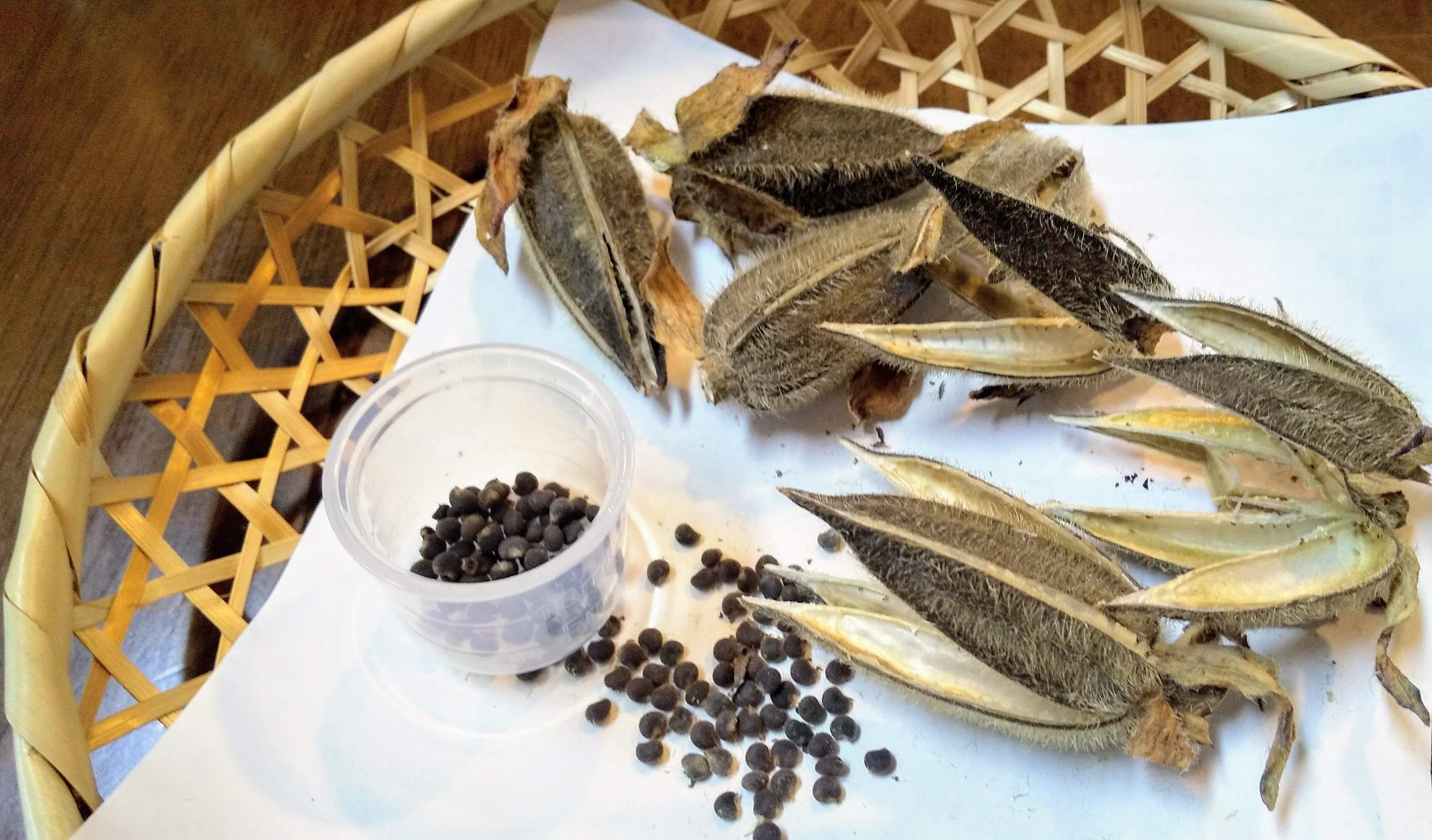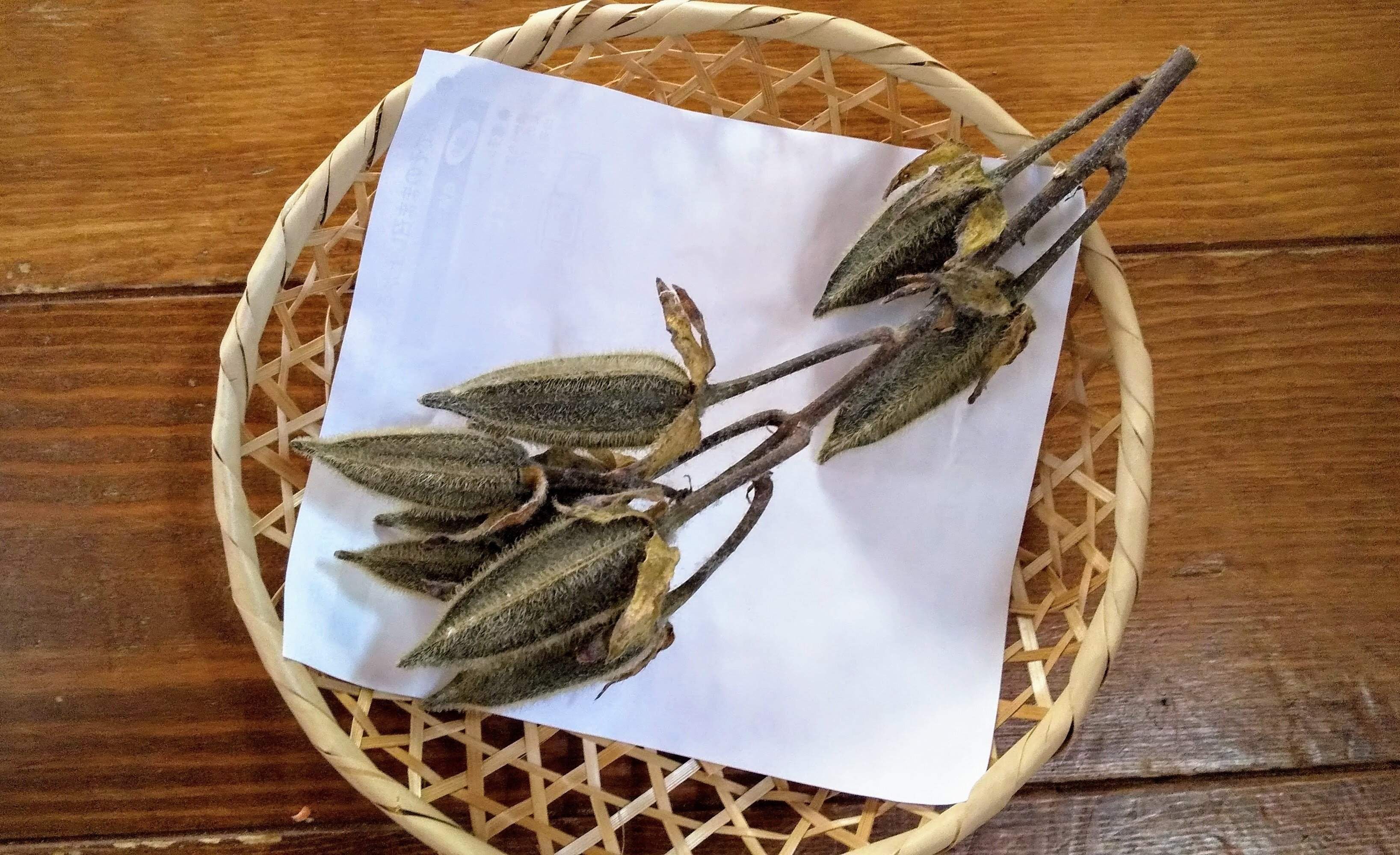 完熟オクラの見た目は、まるで干からびた木の枝みたい…