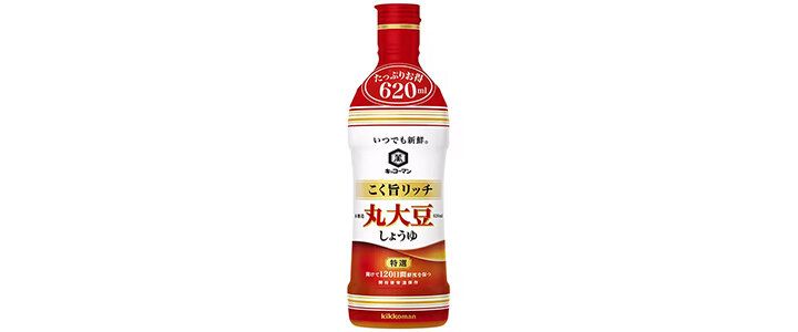 「キッコーマン いつでも新鮮 こく旨リッチ 特選 丸大豆しょうゆ」は、原料に“丸大豆”を使用。油分もそのまま、大豆の旨みを丸ごと活かすことで、まろやかな風味と上品な香りを実現しました。