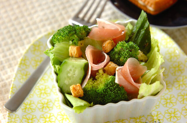 「生ハムサラダ」は色とりどりの野菜と一緒に生サラダを盛り付けるだけの簡単サラダです。冷凍生ハムを解凍して食感や風味が変わってしまったとしても、大ぶりの野菜と一緒に食べれば気になりません。