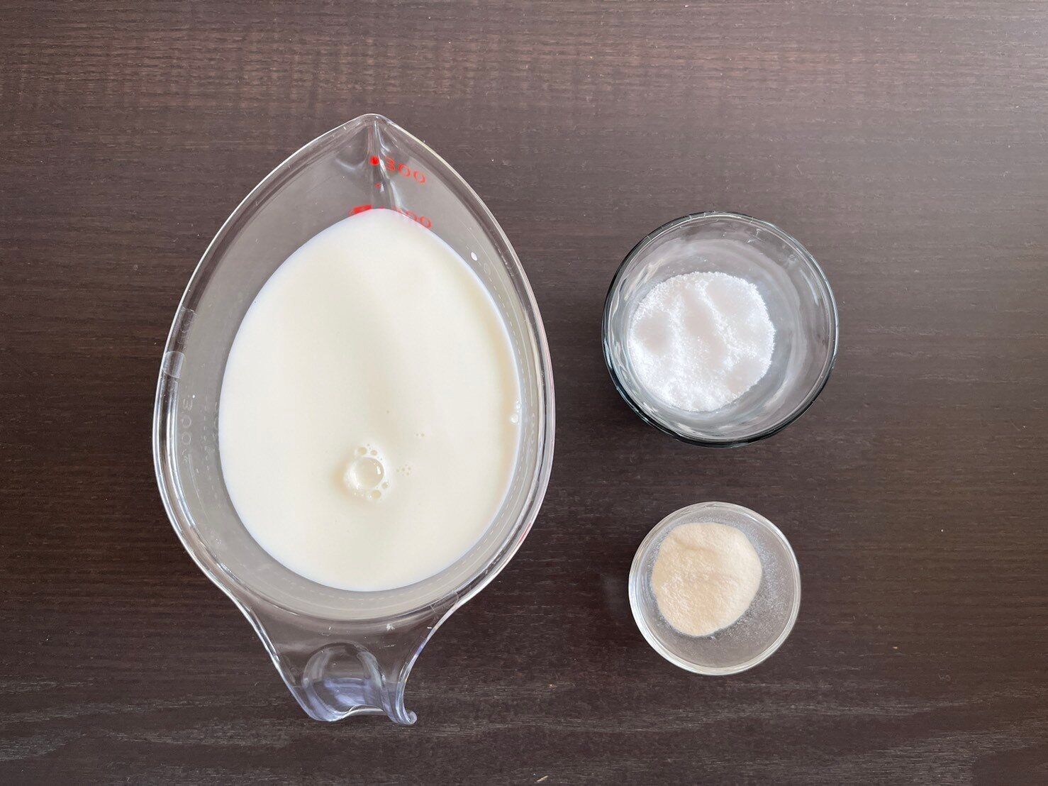 この3つの材料をベースに、後はお好みのフルーツを用意してください♪