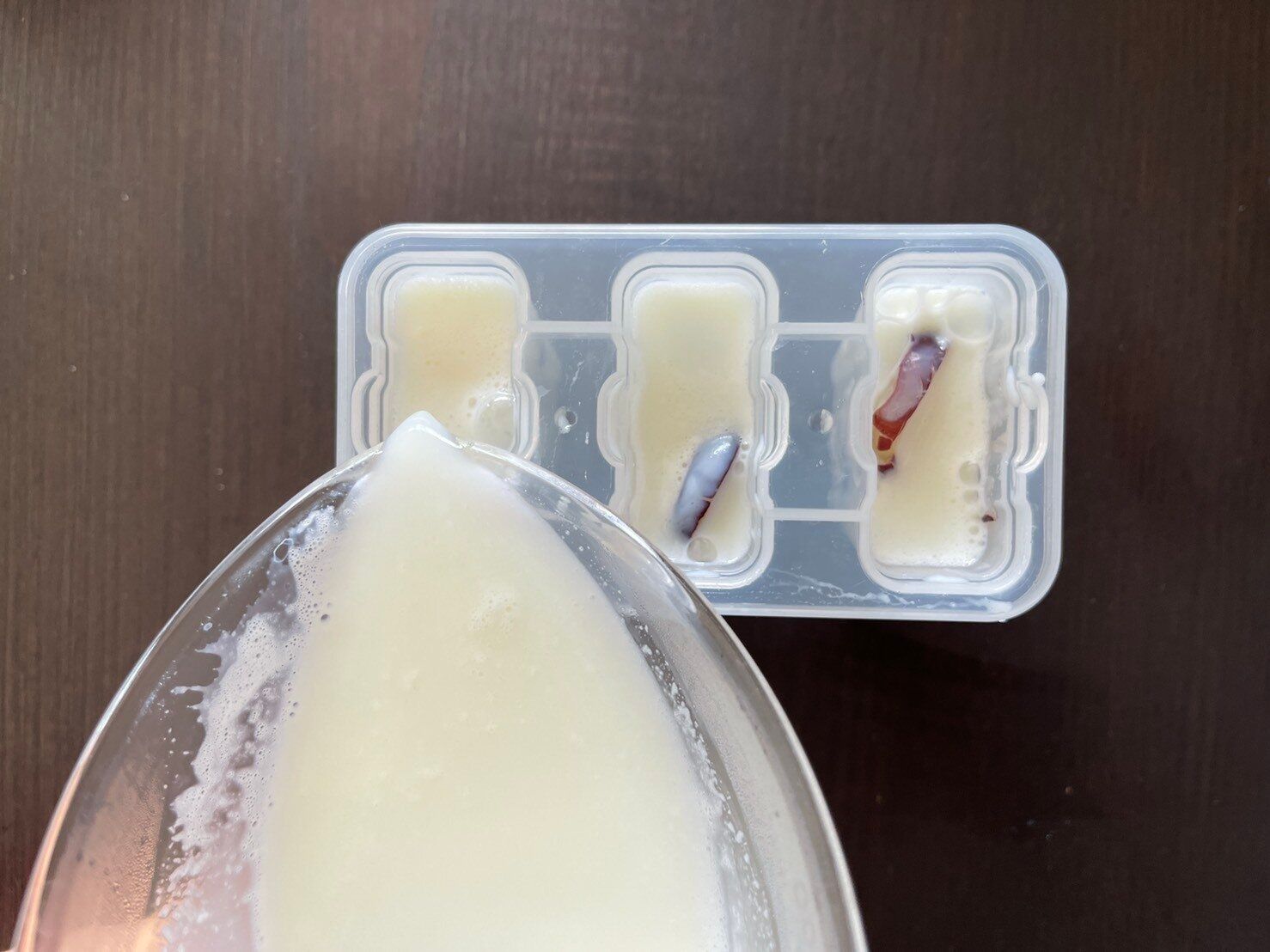 3.(1)に(2)を注ぎ、冷凍庫で冷やし固めて完成。