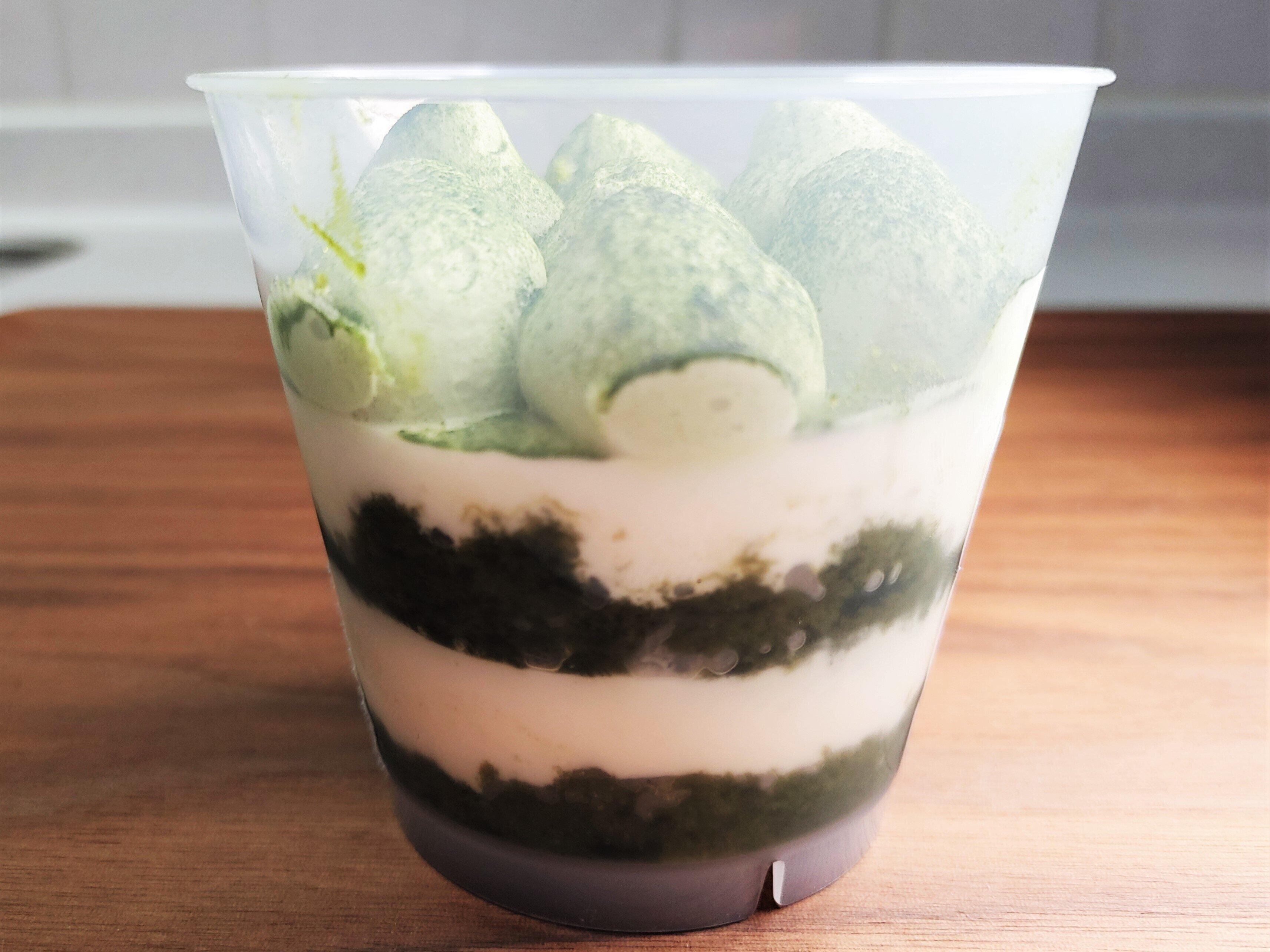 ですが、こちらのティラミスは抹茶風味のスポンジ生地に抹茶シロップをしみ込ませ、抹茶ホイップを施し、トップを抹茶パウダーで仕上げた、まさに抹茶づくしの仕様です。