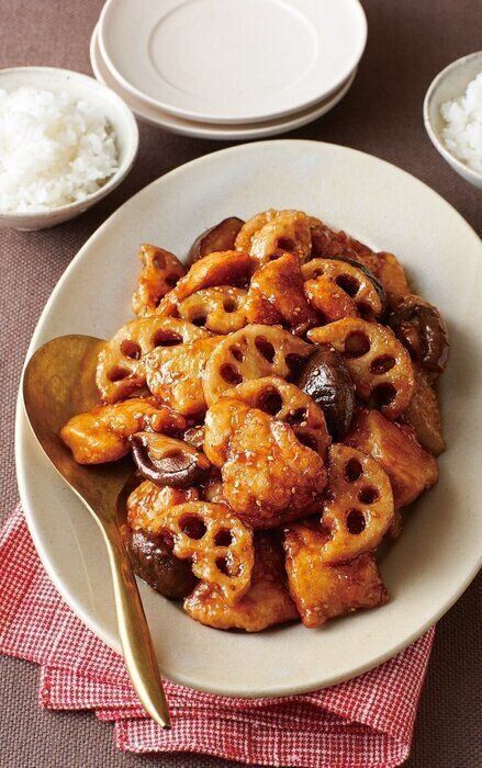 ボリュームおかずで寒い日もあったかに!鶏とれんこんの揚げ焼きにオイスターソースのこくうま甘酢だれをからめれば、ご飯が進みます。鶏のデミ風チキンは、鶏肉をシンプルに焼くだけ&緑黄色野菜をつけ合わせにして彩りもバッチリ◎。