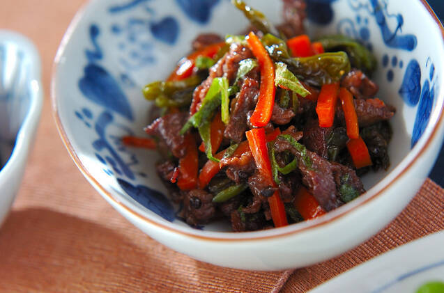 牛肉とたっぷりの野菜を使用したレシピが「牛肉の甘辛煮」です。濃いめに味つけされているため、食べ応えのある1品と言えるでしょう。