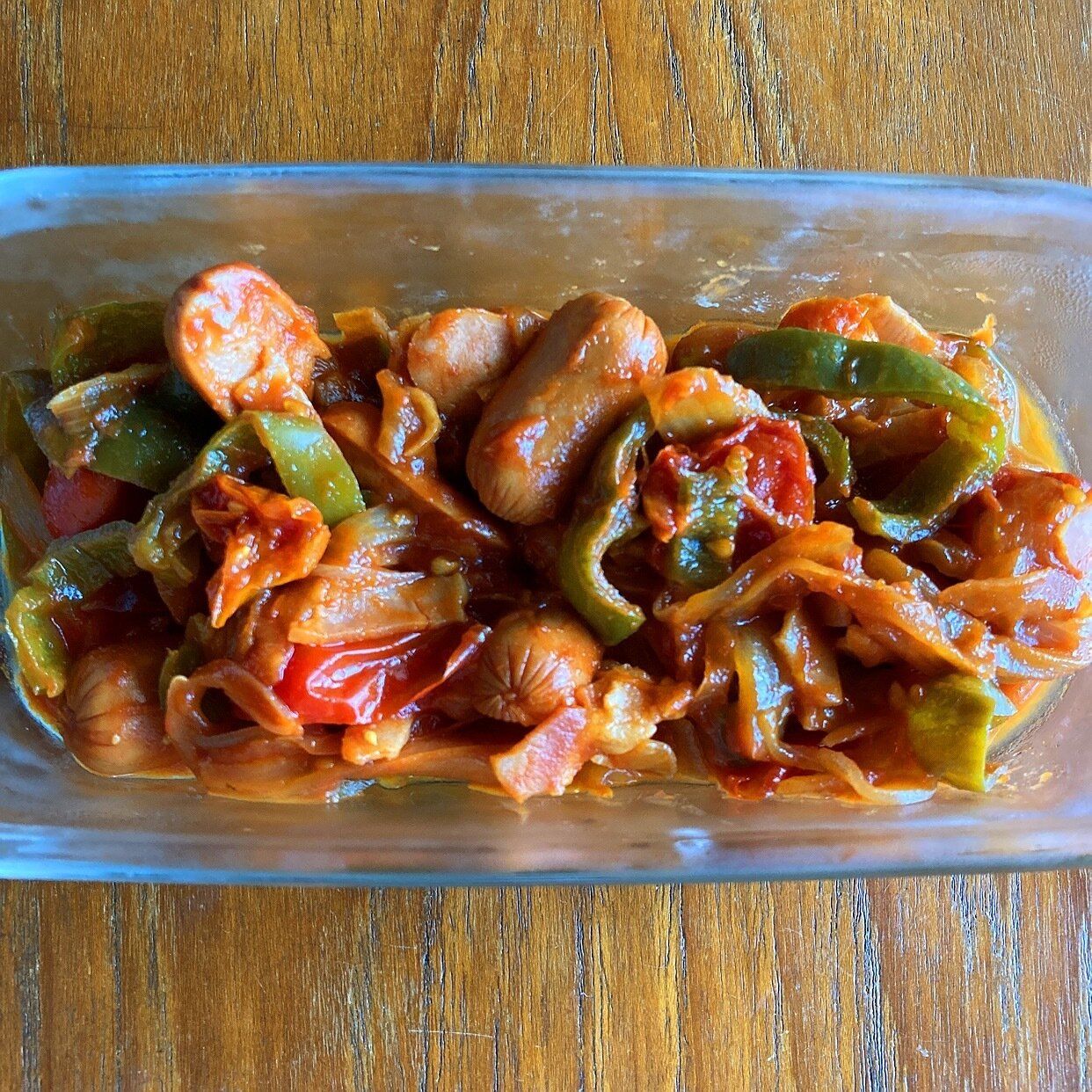 わざわざ作り置くと考えるより、ナポリタンを作る日に一度に2回分を作り置くとイメージしておくとラクになります。我が家は5人家族なので、いつもこの倍量を一度に作ってその日使わなかった半分保存しておく。といった感じです。