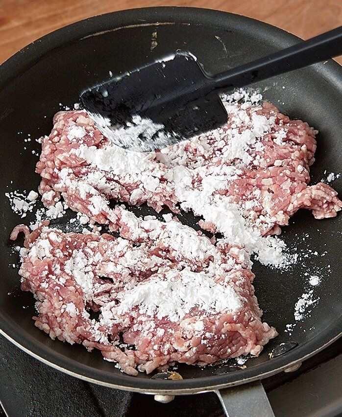 近藤さん あんは、水溶き片栗粉だとだまになりがちですが、最初に片栗粉をひき肉になじませてから作ると、なめらかにできます。