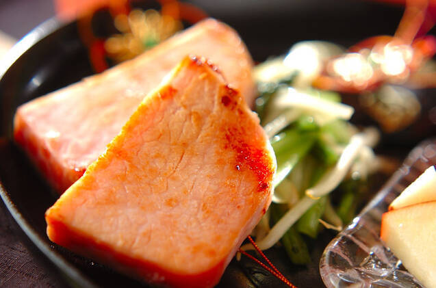 「ハムのソテー」では、厚めにスライスして冷凍保存しておいたハムを活用しましょう。ブロックのハムは切り方次第で重量感もあり、立派な肉料理としてメイン食材になります。