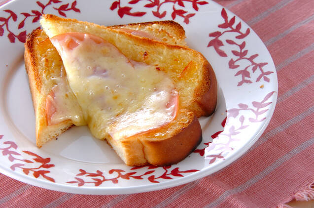「ハムとジャムのトースト」では、薄くスライスした冷凍ハムを使いましょう。バターを塗った食パンの上に、ハムとチーズ、ジャムをのせてトーストするだけの簡単レシピです。