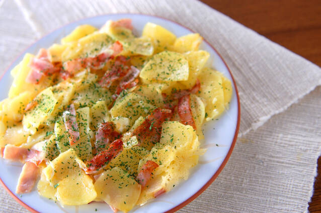 チーズをたっぷり使っておいしく仕上げましょう。じゃがいもの食感とハムがよく合うレシピです。水分が出ないため、お弁当のおかずにも向いています。