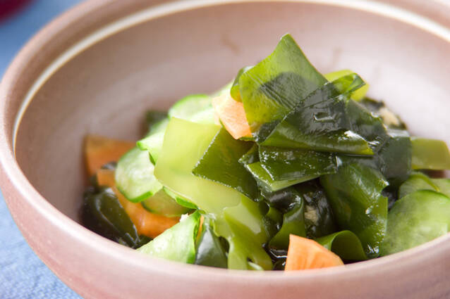 さっぱりと食べられる生わかめを使用した1品が、酢の物です。解凍した生わかめを食べやすい大きさにカットしてから、きゅうりや人参と和えていきましょう。生わかめはしっかりと水分を絞り切るのがポイントです。