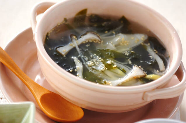 続いて紹介するレシピが、生わかめと白ネギのスープです。汁物なので冷凍した生わかめは、そのまま鍋に入れて使用できます。つるんとした喉越しと、わかめの歯ごたえが堪能できる1品です。
