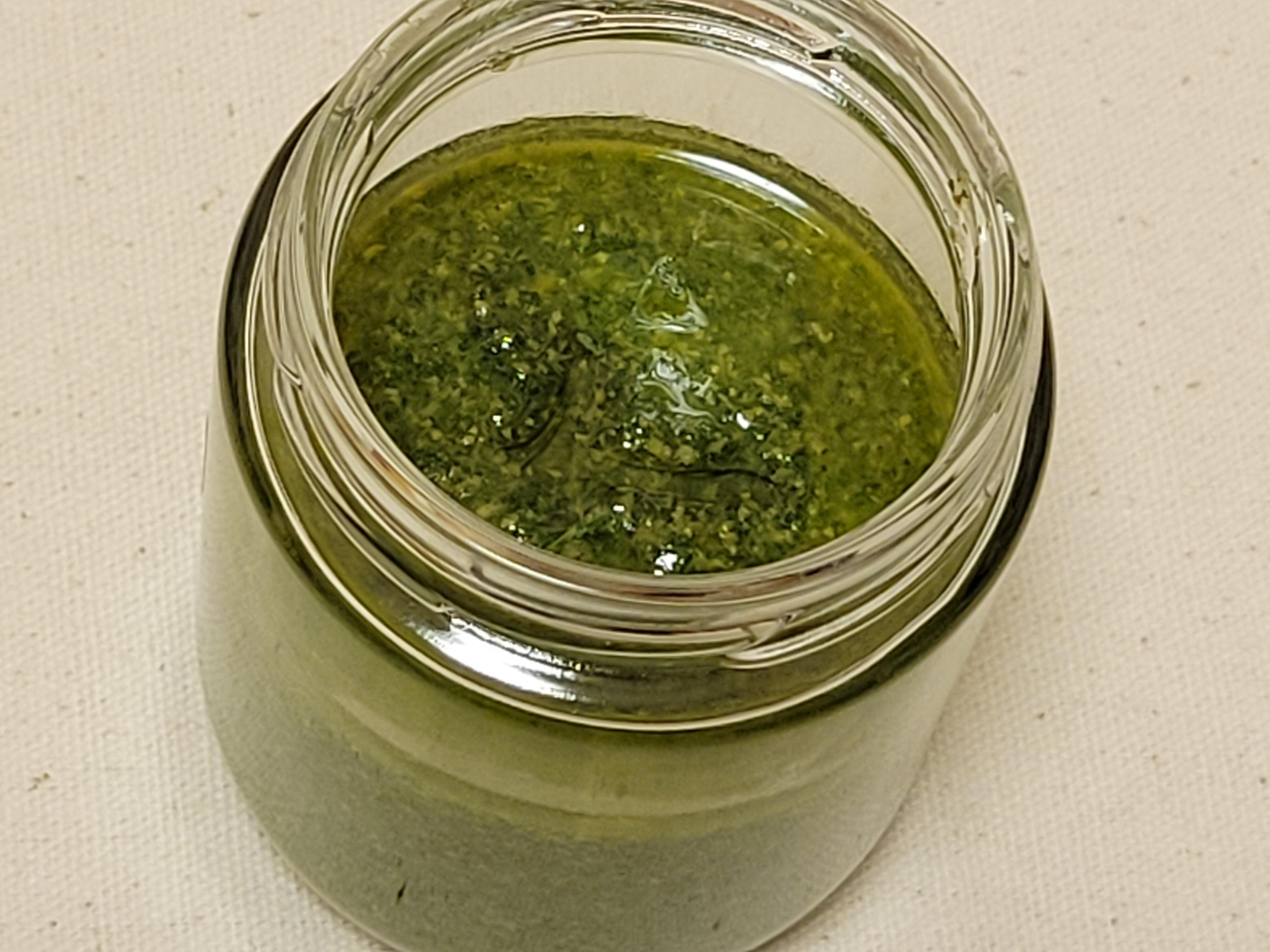 消毒した瓶に入れ、表面が空気に触れないよう少量のオリーブオイルでコーティングし、冷蔵庫に入れ、2週間以内に使いきる。もしくは冷凍可能なジッパー付きバッグに入れて、冷凍庫で保存し1か月以内に使い切る。