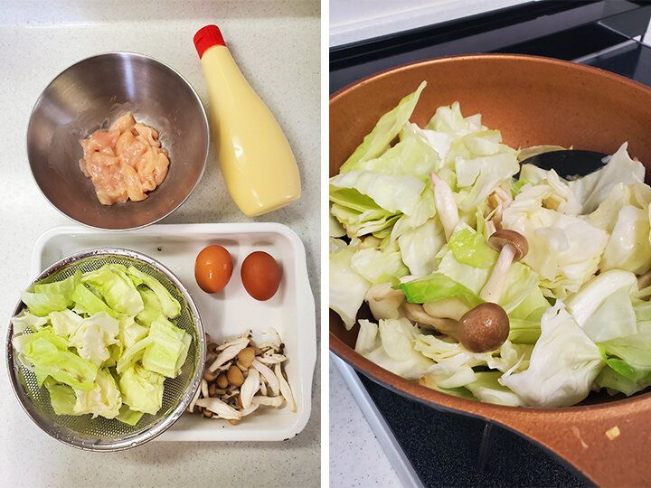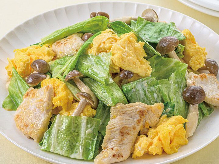 キャベツと鶏むね肉とたまごのレモンマヨソテー【調理時間10分】