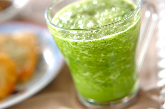 鮮やかな緑色のジュースですが、見た目の飲み辛いイメージに反し、飲みやすいのでお試しください。すべての材料をミキサーに入れて攪拌するだけで、とても簡単にできあがります。
