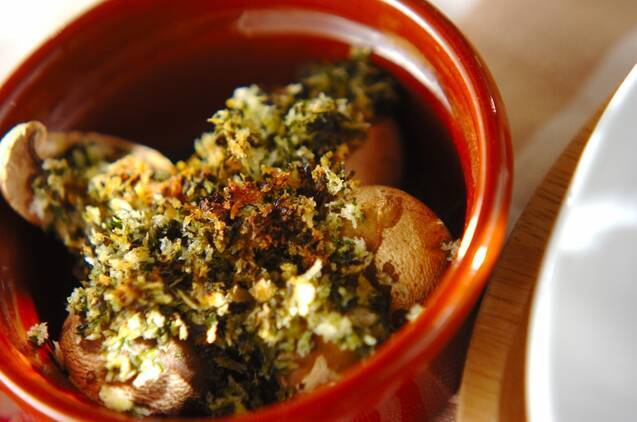 マッシュルームのパン粉焼きは、冷凍マッシュルームがあれば、香草パン粉をのせてトースターで焼くだけでできあがる、とても簡単な料理です。マッシュルームを丸ごと使えるため、丸ごと冷凍保存しているマッシュルームも、そのまま使えます。