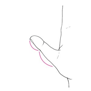 まず、細くて短い紐のようなものがついている先端を少し折って、まっすぐになっている方の筋を取ります。次に葉っぱのようなものがついているガクからカーブしている方の筋を取りましょう。
