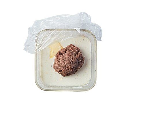 耐熱容器に[A]を入れてよくこねて、だ円形に成形する。ふんわりとラップを掛けて、電子レンジで4分加熱する。