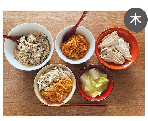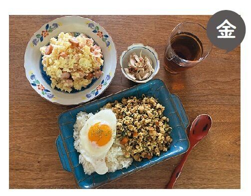 あしが早い鶏ひき肉は日曜日に半端野菜と炒めてドライカレーにし、金曜日まで保存。日曜日に多めに作ったナムルは、火曜日にリメイクしてぺろり。鶏胸肉からはがした鶏皮は、月曜日のスープに入れて使い切る。