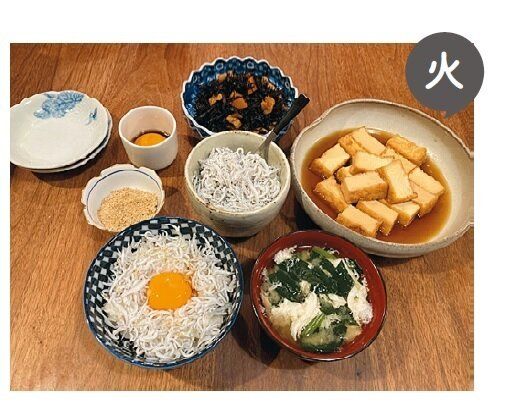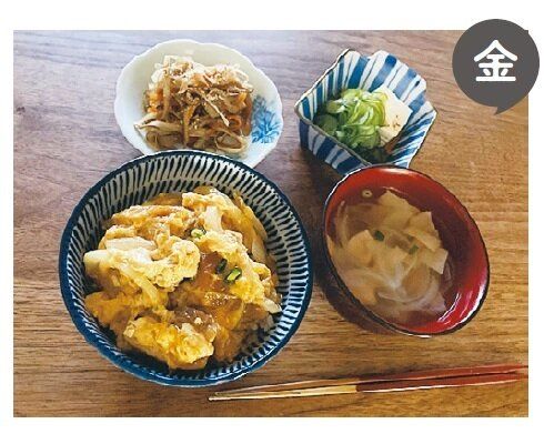 食べる時間が家族それぞれ違うから、各自が好きな物をご飯にのせて食べます。作り置きしているご飯のお供や残り物を出すだけだから、ムダなしでラク!