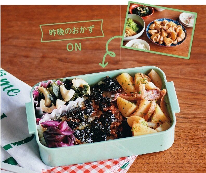 べんとうのおかずは、夕食の残り物をそのままのせたり、ちょっと味変して入れたりするだけ。わざわざ食材を買わずにすみ、よけいな出費もゼロ。