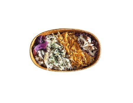 ●にんじんしりしりとほぐしたさばをのせたさばずし