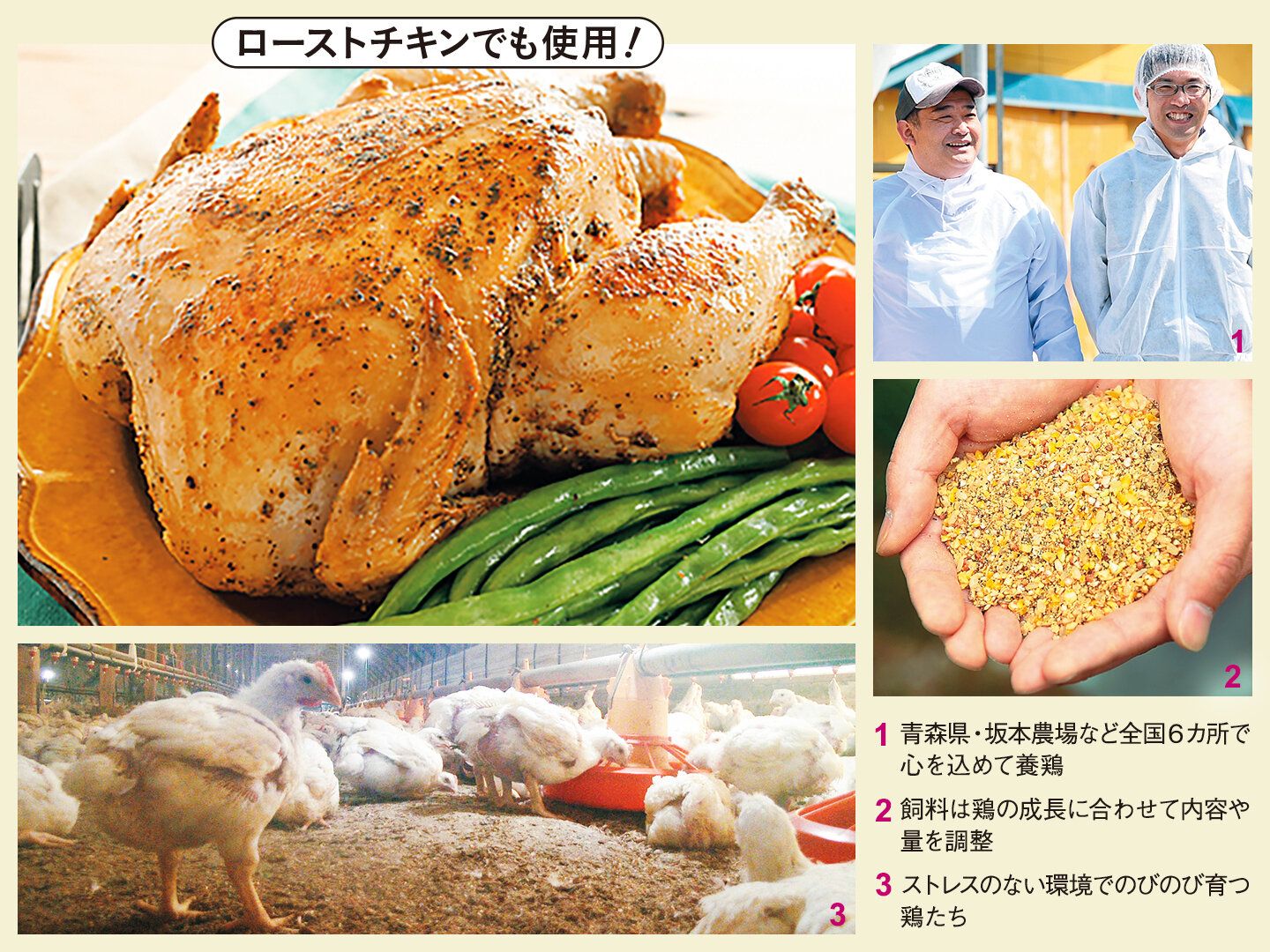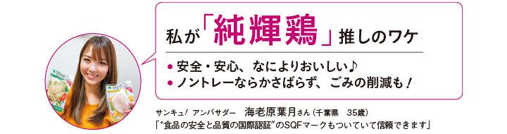 「“安心して、おいしいお肉を食べてもらいたい”という想いから、抗生物質・合成抗菌剤不使用の飼料で大切に育てています。鮮度にもこだわり、農場に近い場所に加工所を配置し、新鮮なうちに産地でパック。また、バイオマスプラスティックを使用したノントレー包装で、環境への配慮、食品ロス削減もめざしています」(イオントップバリュ 畜産商品部 鈴木久地さん)
