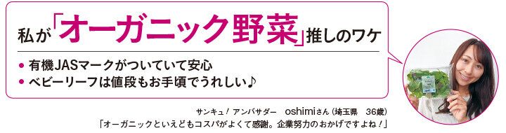 「オーガニック(有機)野菜は化学合成農薬や化学肥料などに頼らず、自然の力を生かして生産したもの。『そのまま食べるサラダ』やお手頃な『ベビーリーフ』はオーガニックライフのスタートに最適です。オーガニックの味は伝えるのは難しいです。まずはぜひお試しください」(イオントップバリュ 農産商品部 川口裕史さん)