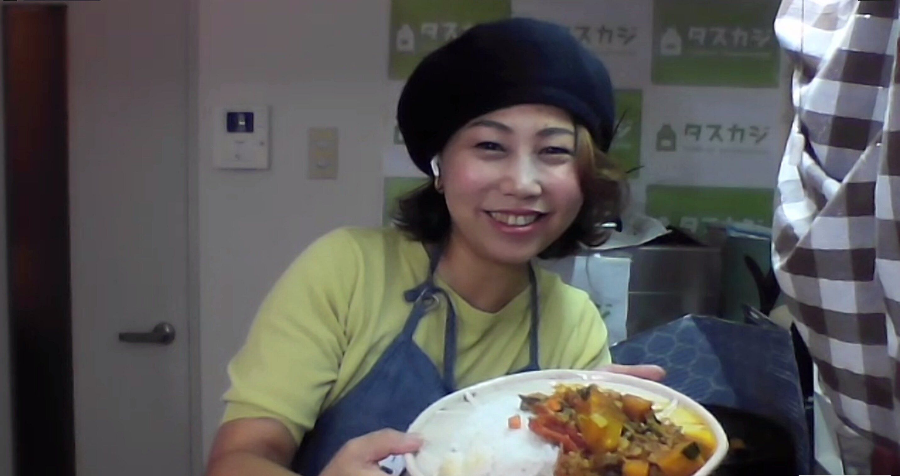 作り置き料理専門の「タスカジさん」とオンラインでつながりながら、一緒に料理を作っていくことができます。
