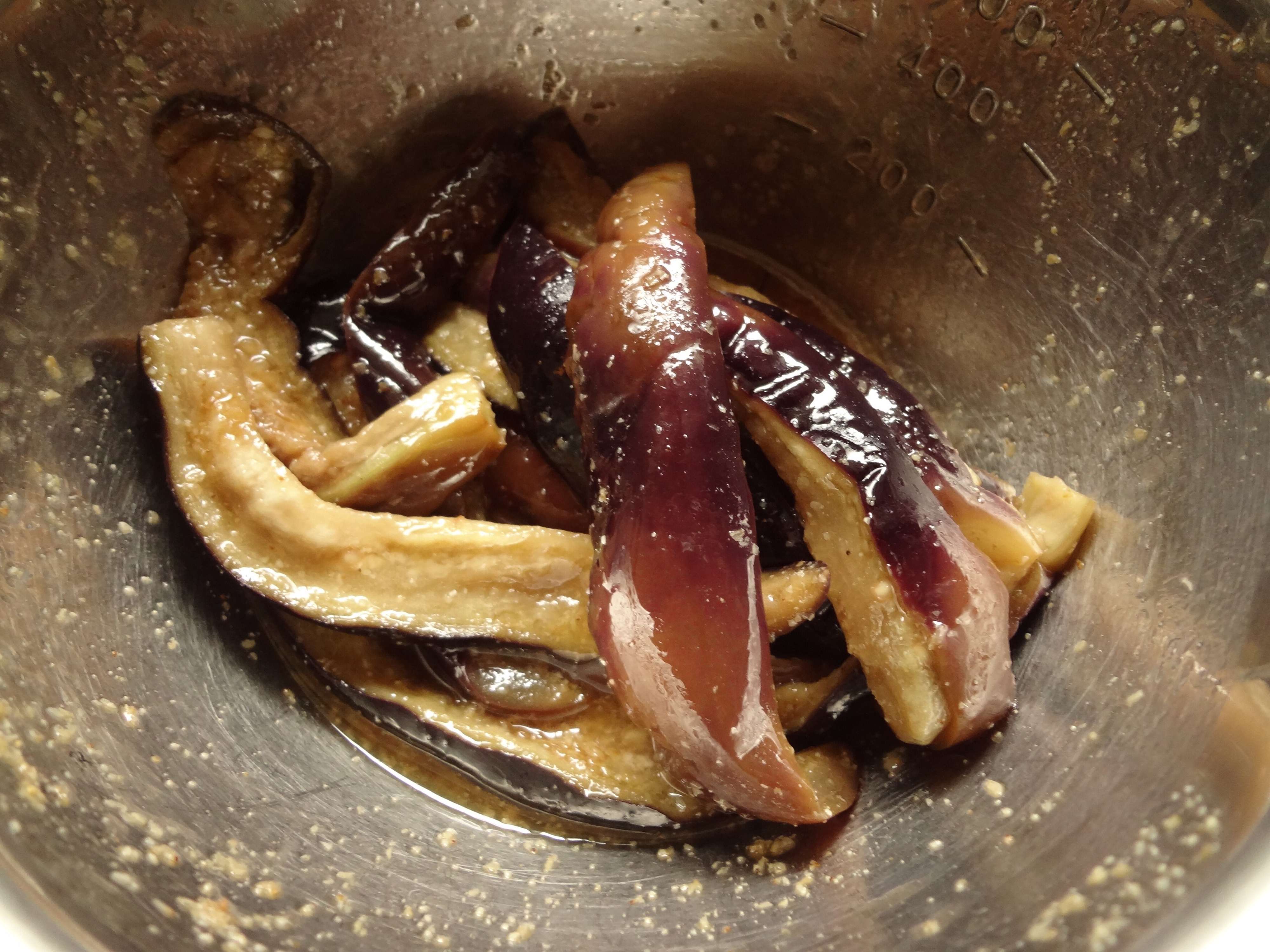 皮付きの冷凍ナスを使うと、食感が良くて食べ応えアップ!!ナスを手で裂くと味がしみて美味しいです。