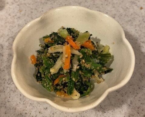今回は、ほうれん草の胡麻和えにプラスしました。「何かものたりない」感じを、簡単にカバーしてくれます◎