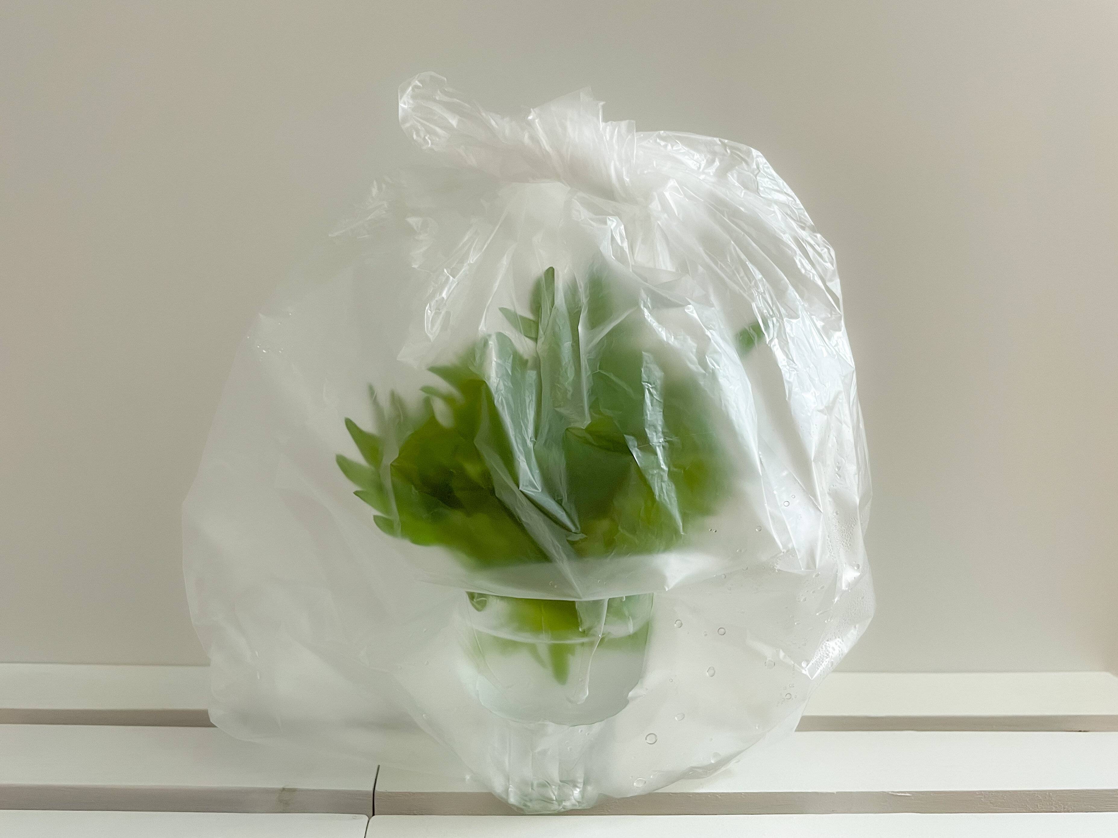 (3) グラスごとポリ袋の中に入れ、ふんわりと口を閉じる。