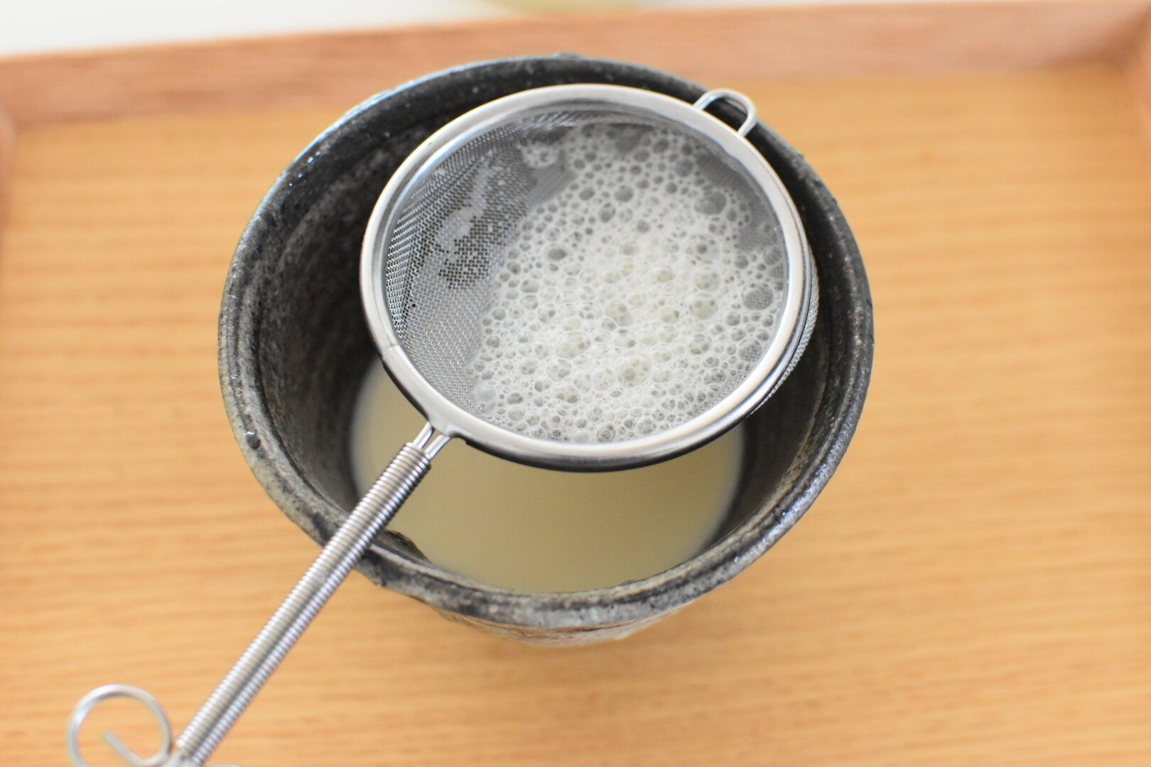 3.プリンカップなどの器に茶こしなどで濾しながら入れたら、冷蔵庫で固まるまで2~3時間冷やす