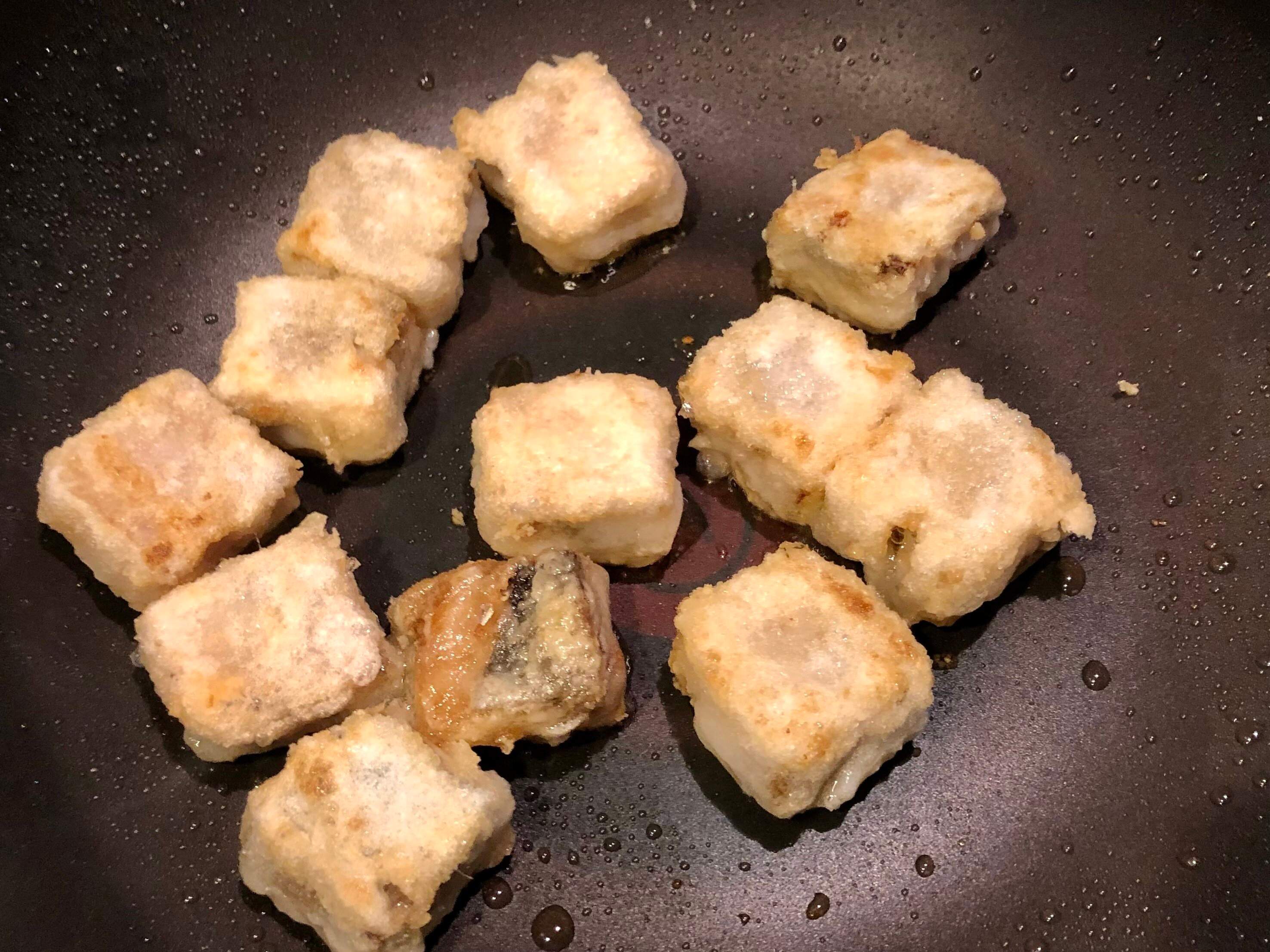 「パパッとできるお魚おかず」は魚の切り身を、キューブ型にして打ち粉をまぶしたもの。すり身ではなく、「切り身」なのがポイントです!