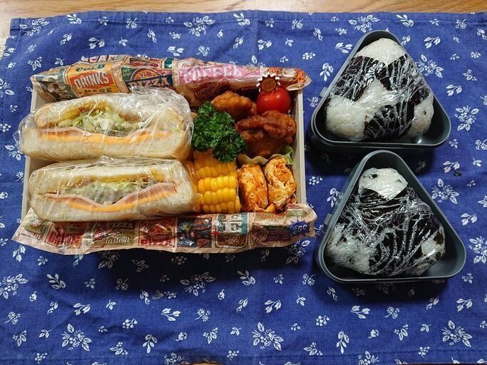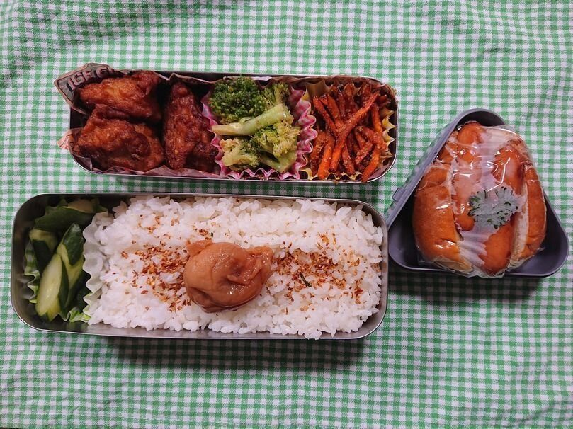 炭水化物祭りです。バイトでよく動くので、ひたすらお腹がすくそうです。こちらもまた、休憩中に食べるものなので簡単に食べられるものをリクエストされています。