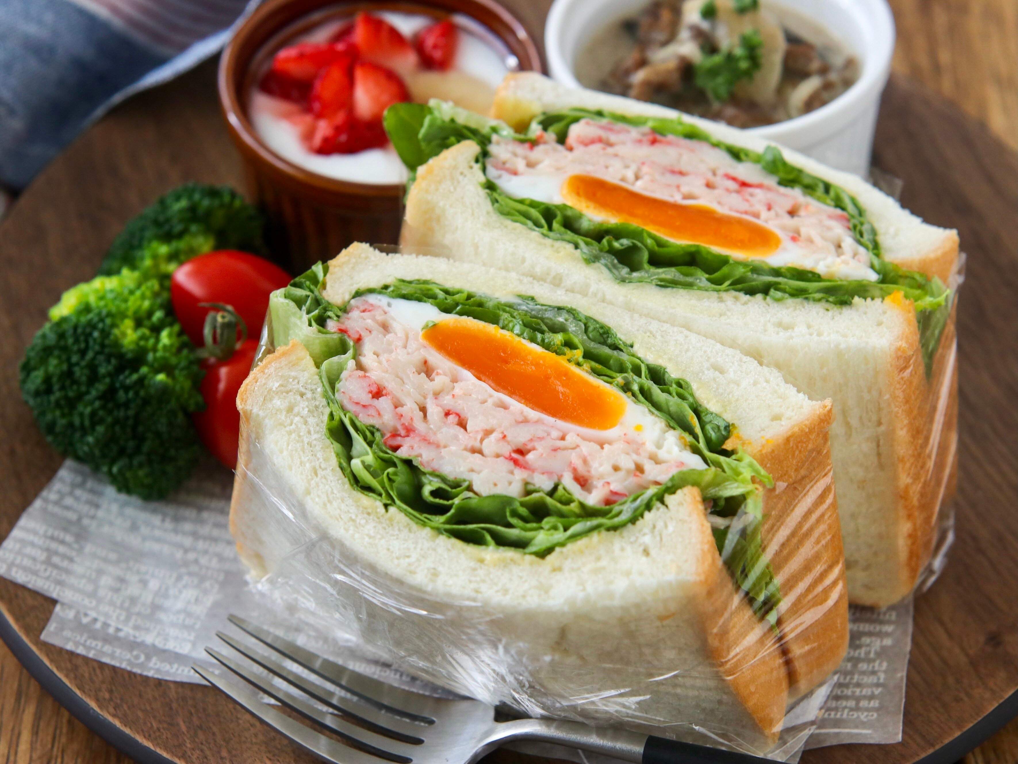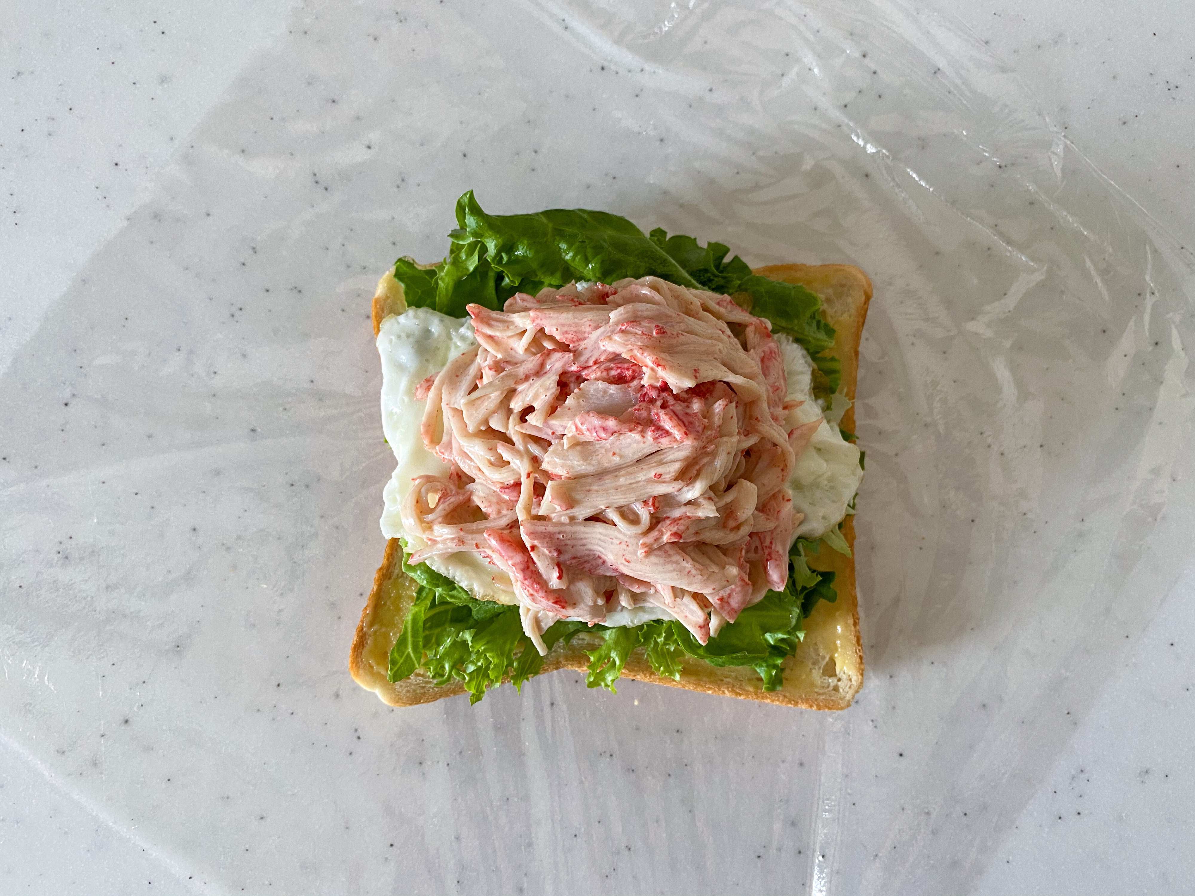 カニたまレタスの具沢山サンド