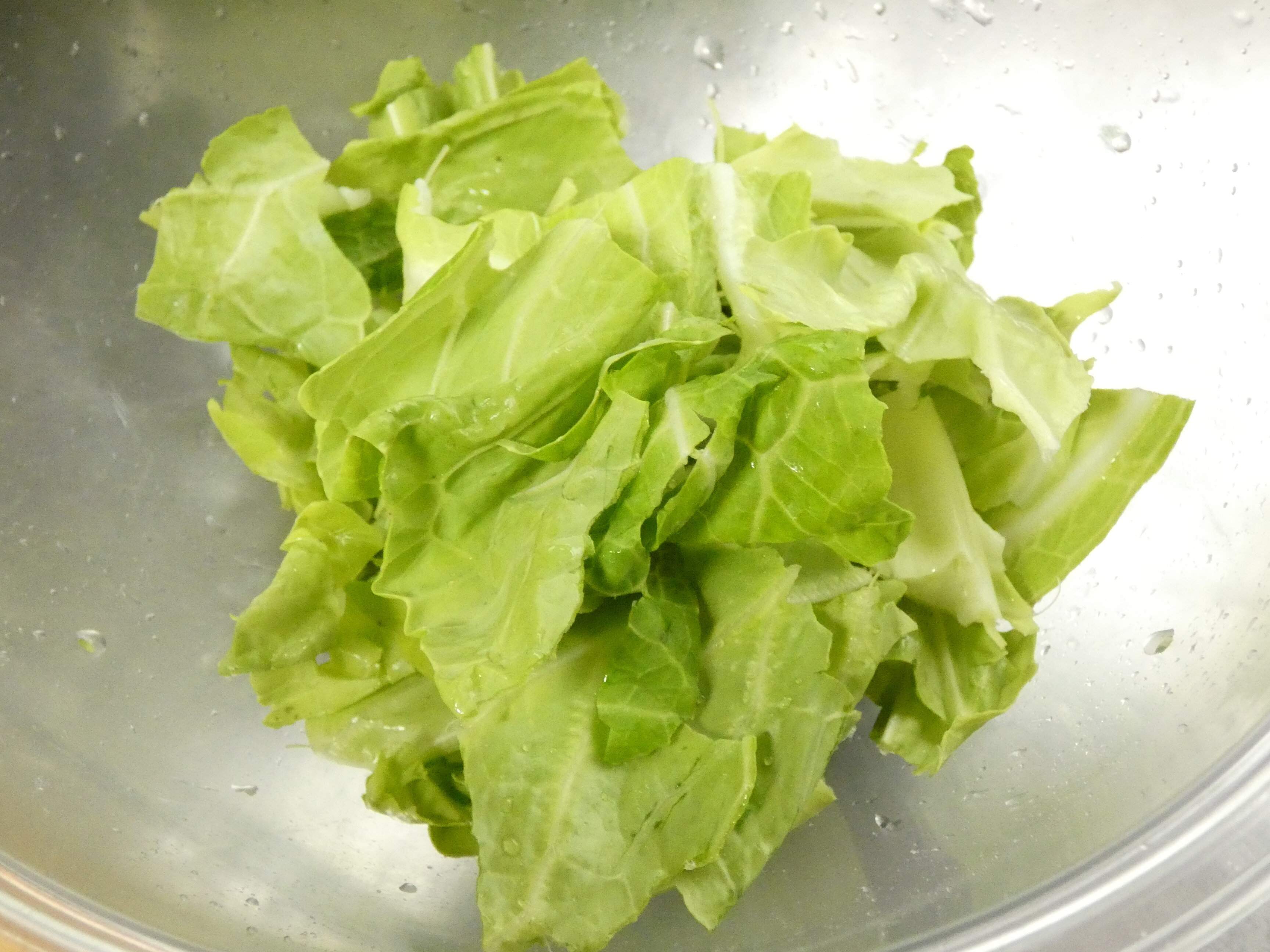 1.キャベツを一口サイズに手でちぎります。