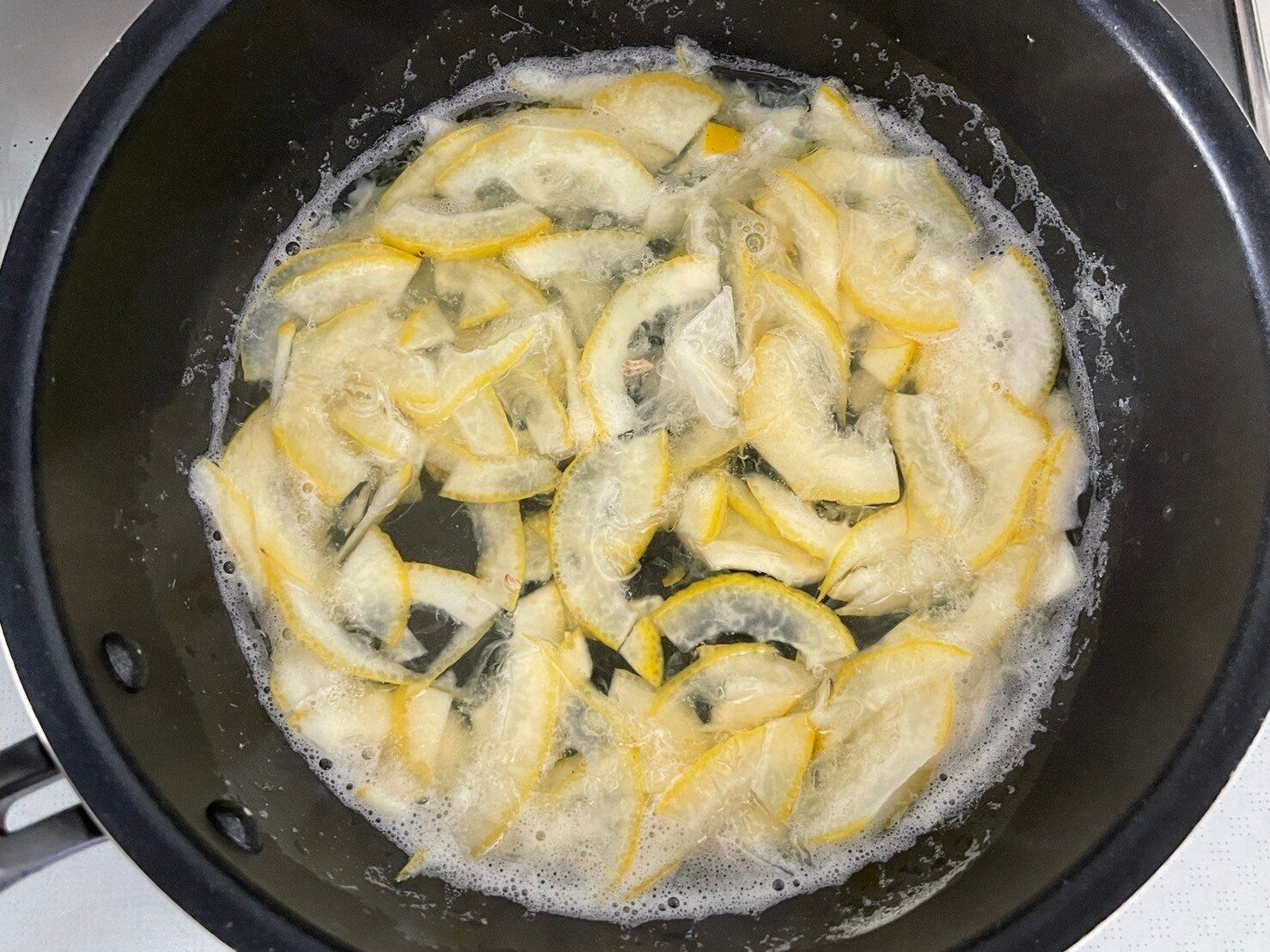 作り方は、「薄切りにしたレモンの皮とお砂糖、水を鍋に入れて煮詰めていく」だけです。