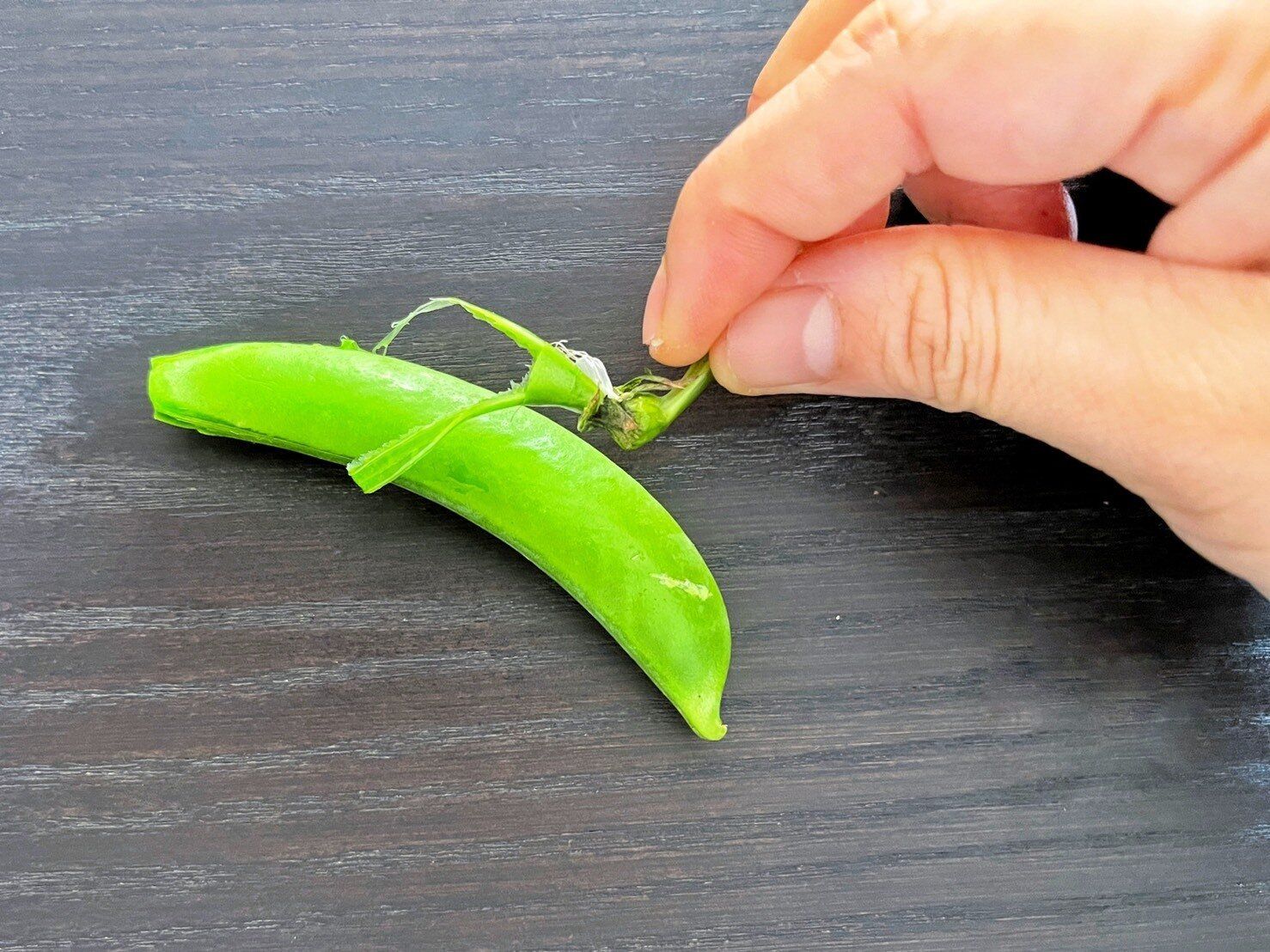 茹でるだけでお弁当に入れることができる、何かと便利なスナップエンドウ。ただ、面倒なのが「下茹で前に両側の筋をとる」作業。