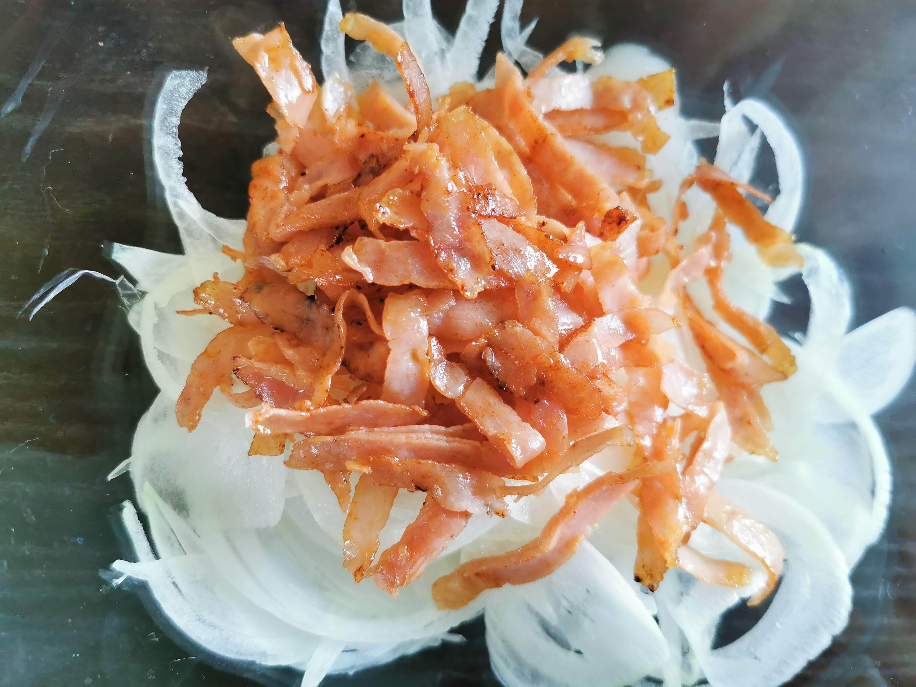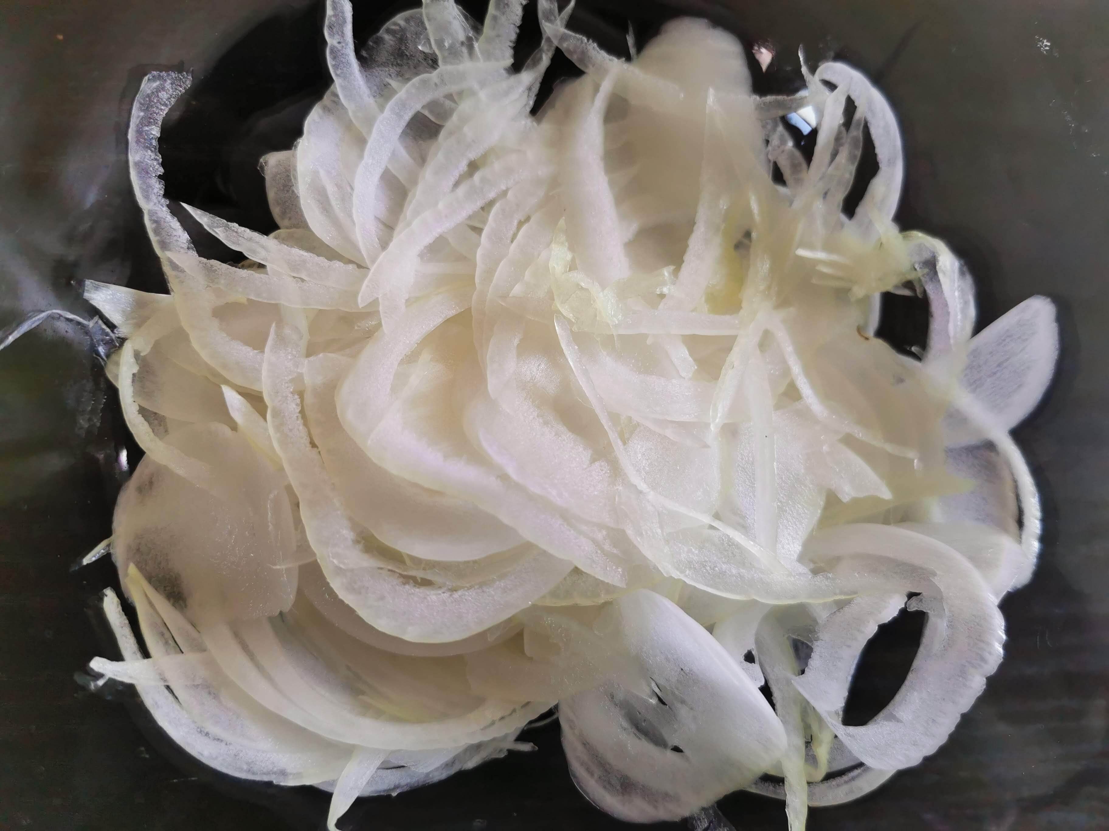 (1)玉ねぎはスライサーで薄切りにし、塩(分量外)を揉みこみ、出てきた水気はしっかり絞っておく。