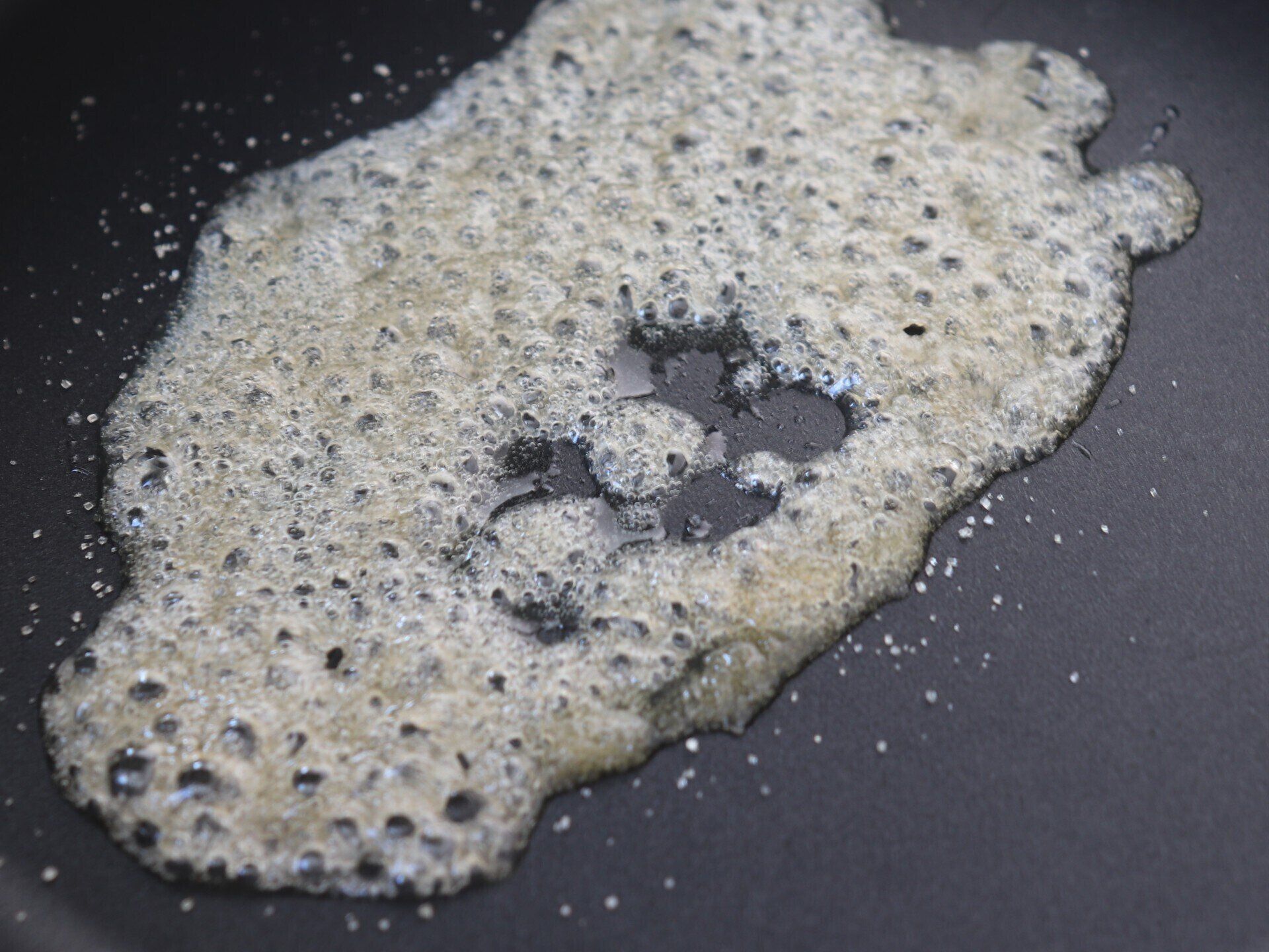 2.フライパンにバター、きび砂糖を入れ、中火にかける。