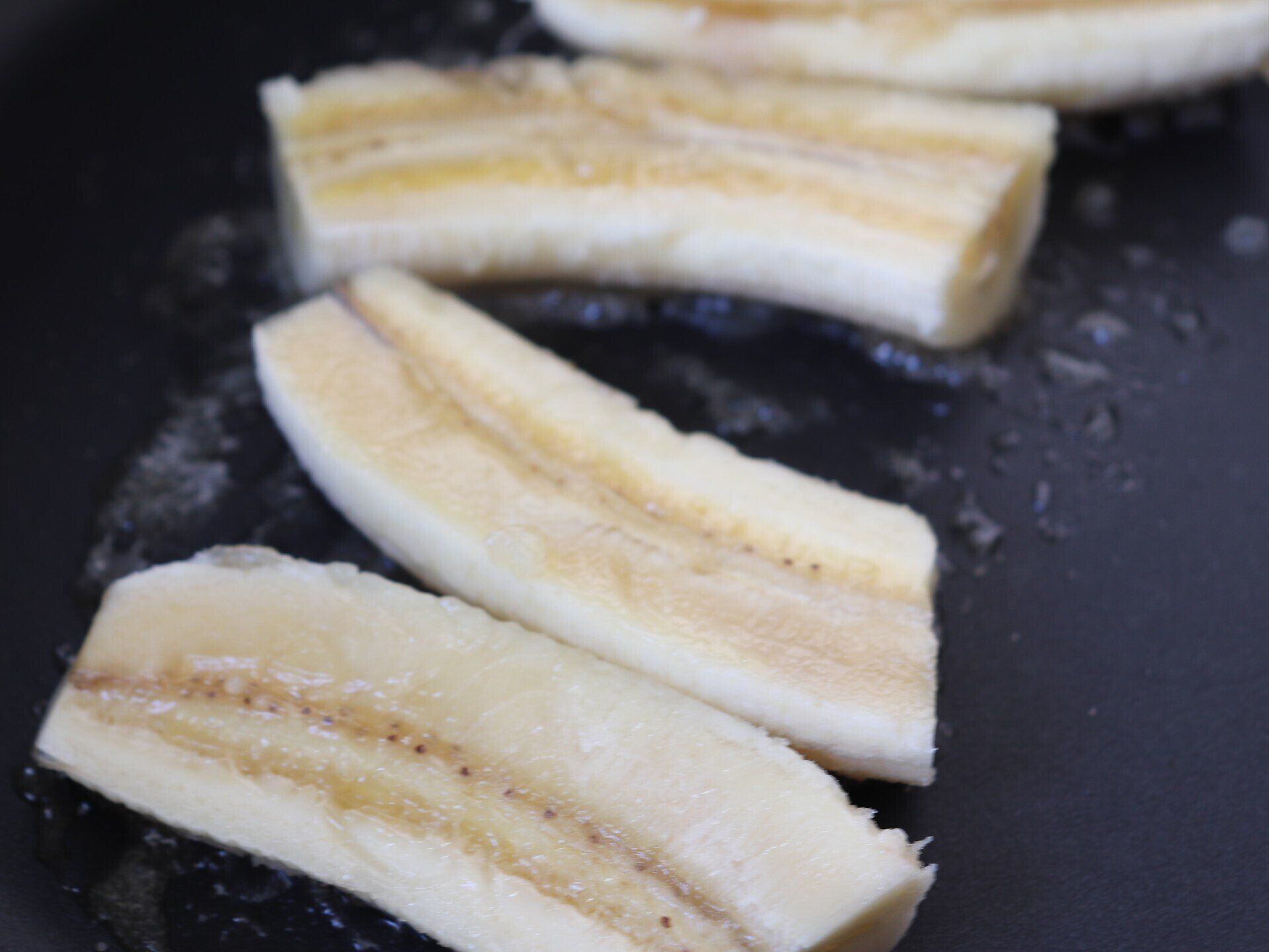 4.中火のままバナナの両面を焼く。