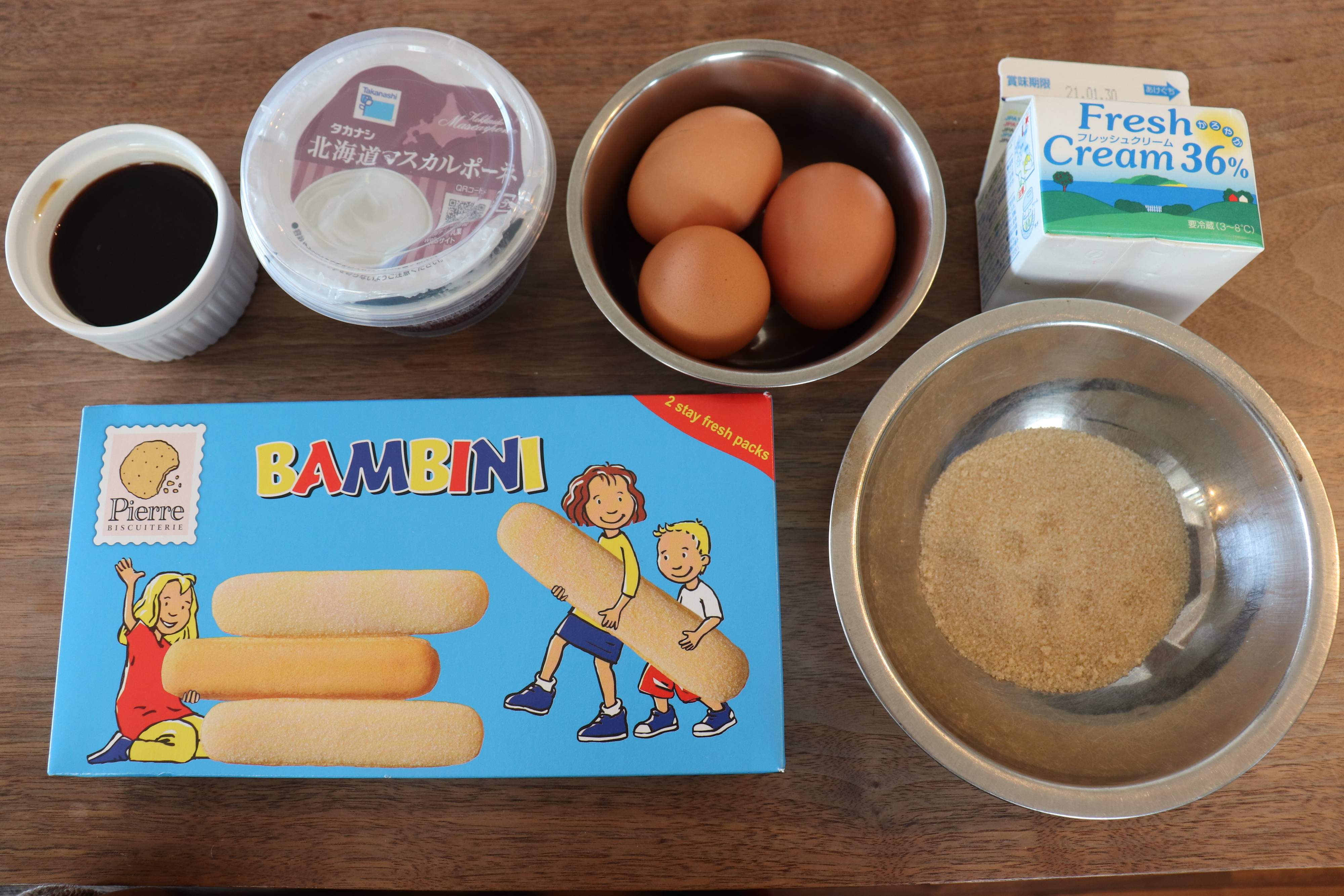 *子供も食べるのでアルコールの風味付けはしていませんが、お酒がOKなら、エスプレッソにラム酒やマルサラ酒を少しまぜると、風味がよくなり、一層美味しいです!