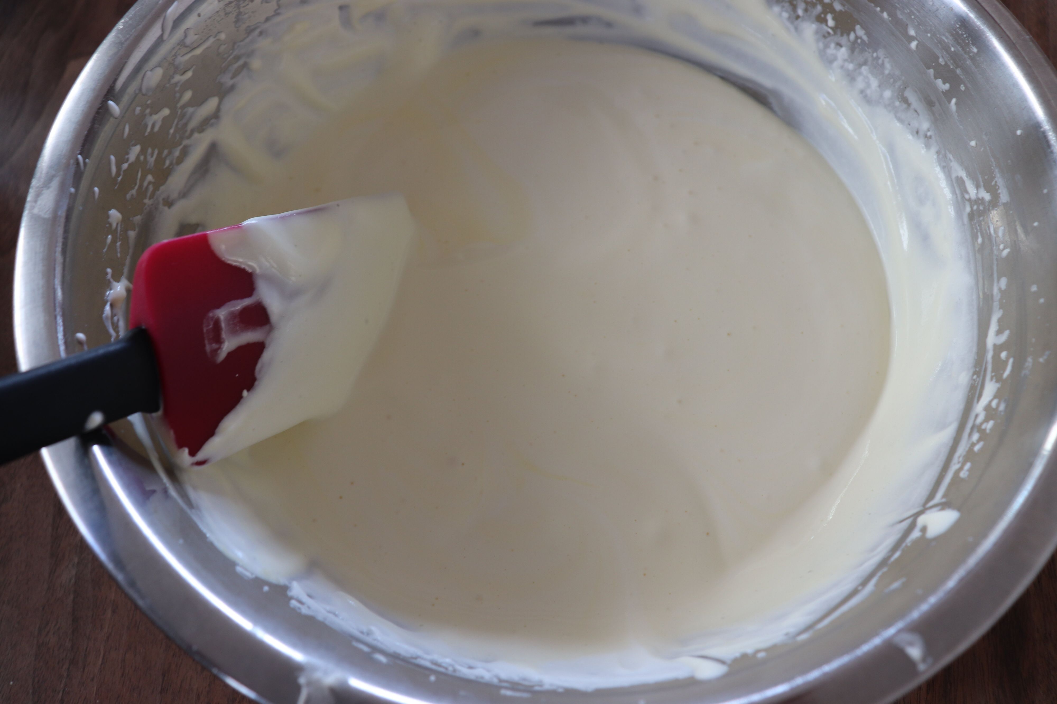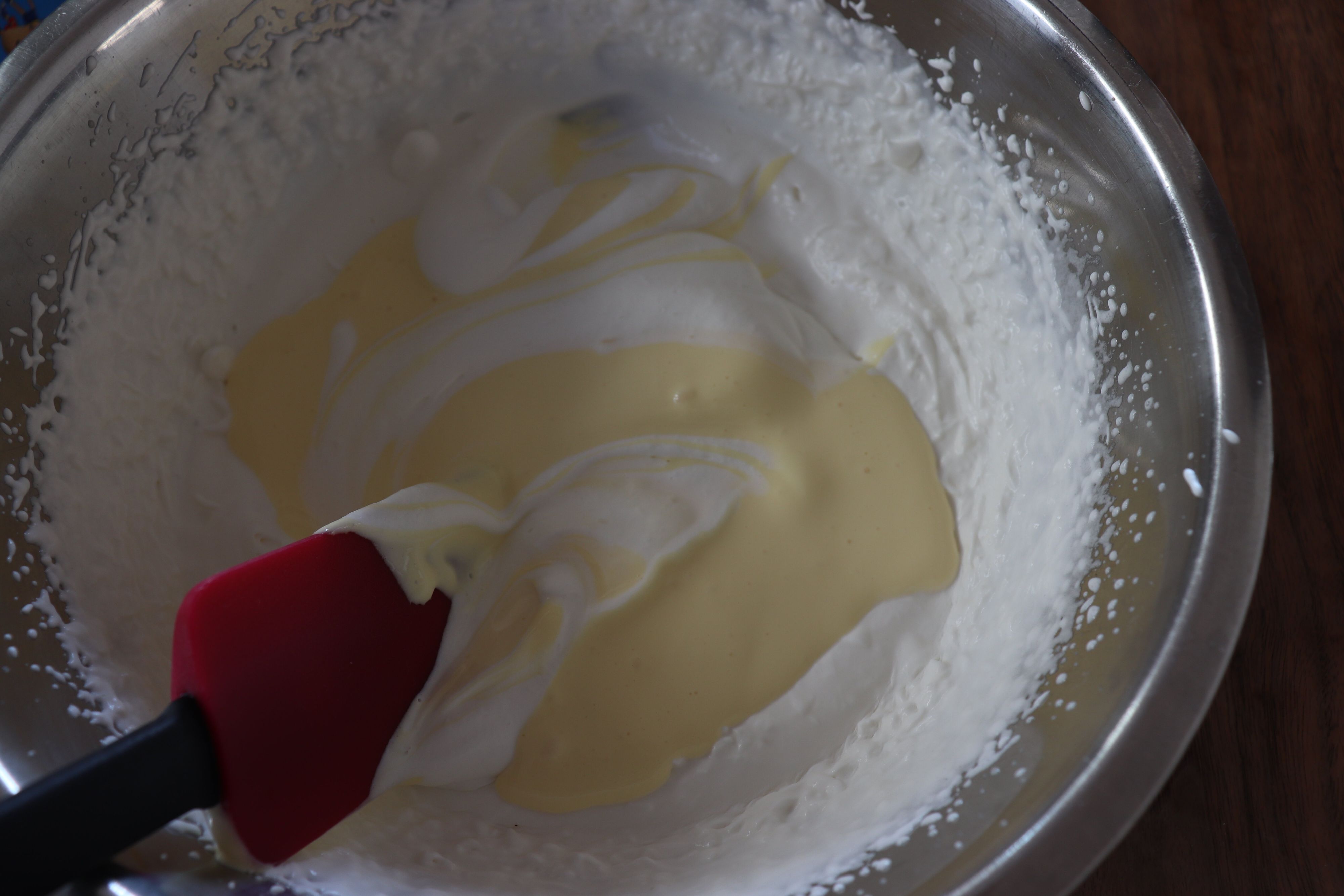 3.2の生クリームに、1を2、3回に分けて入れ、切るようにして混ぜる。