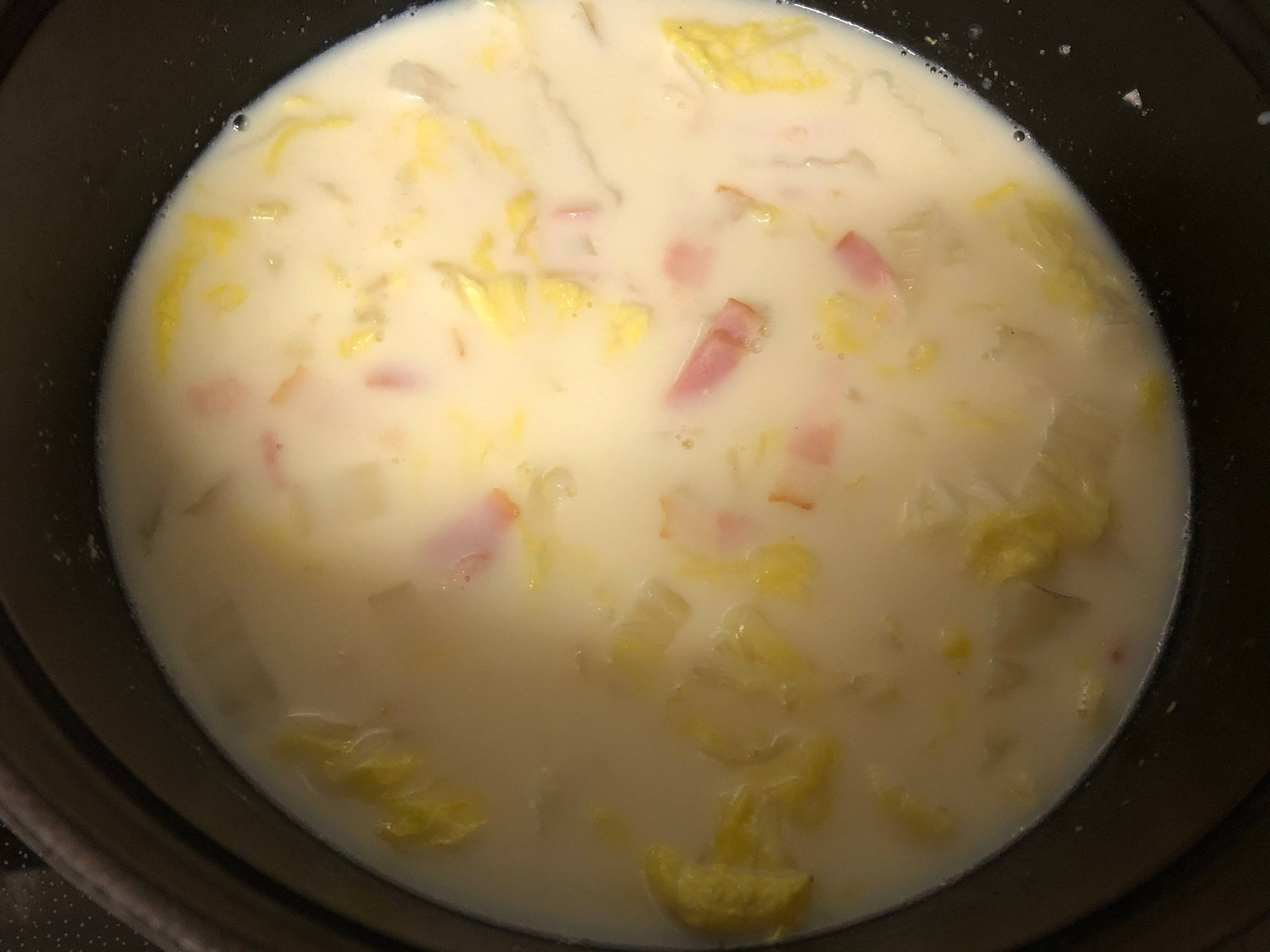 4.白だしと豆乳を加える