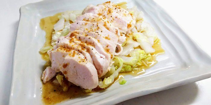 鶏むね肉を塩麹に漬け込むことで、高級な鶏ハムのようになるレシピ。弱火でじっくり蒸し焼きにしているので、さらに内側のしっとりさと外側のジューシーさがアップします。家族にも喜ばれる一品です。
