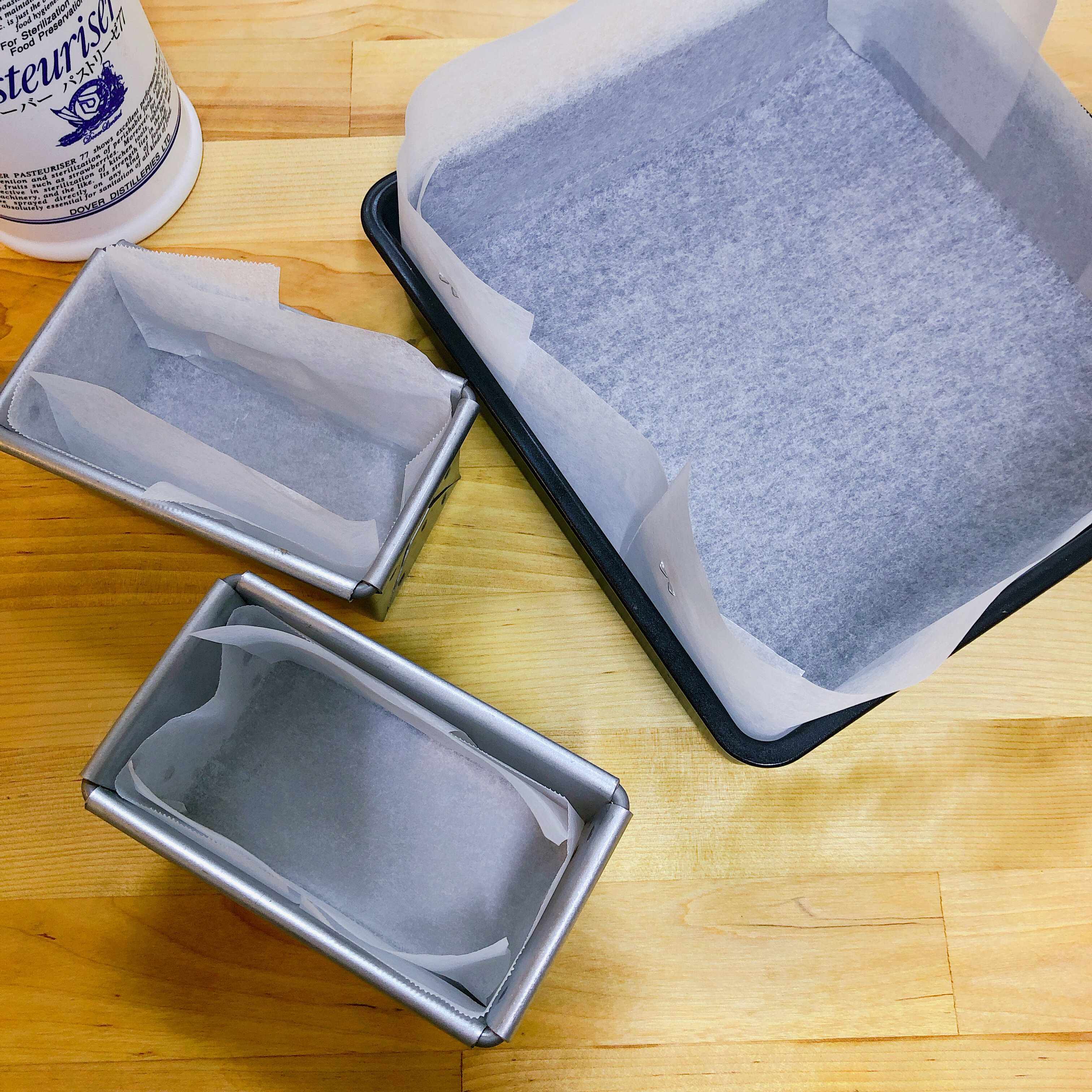 型にクッキングシートを敷きます ⑵の工程