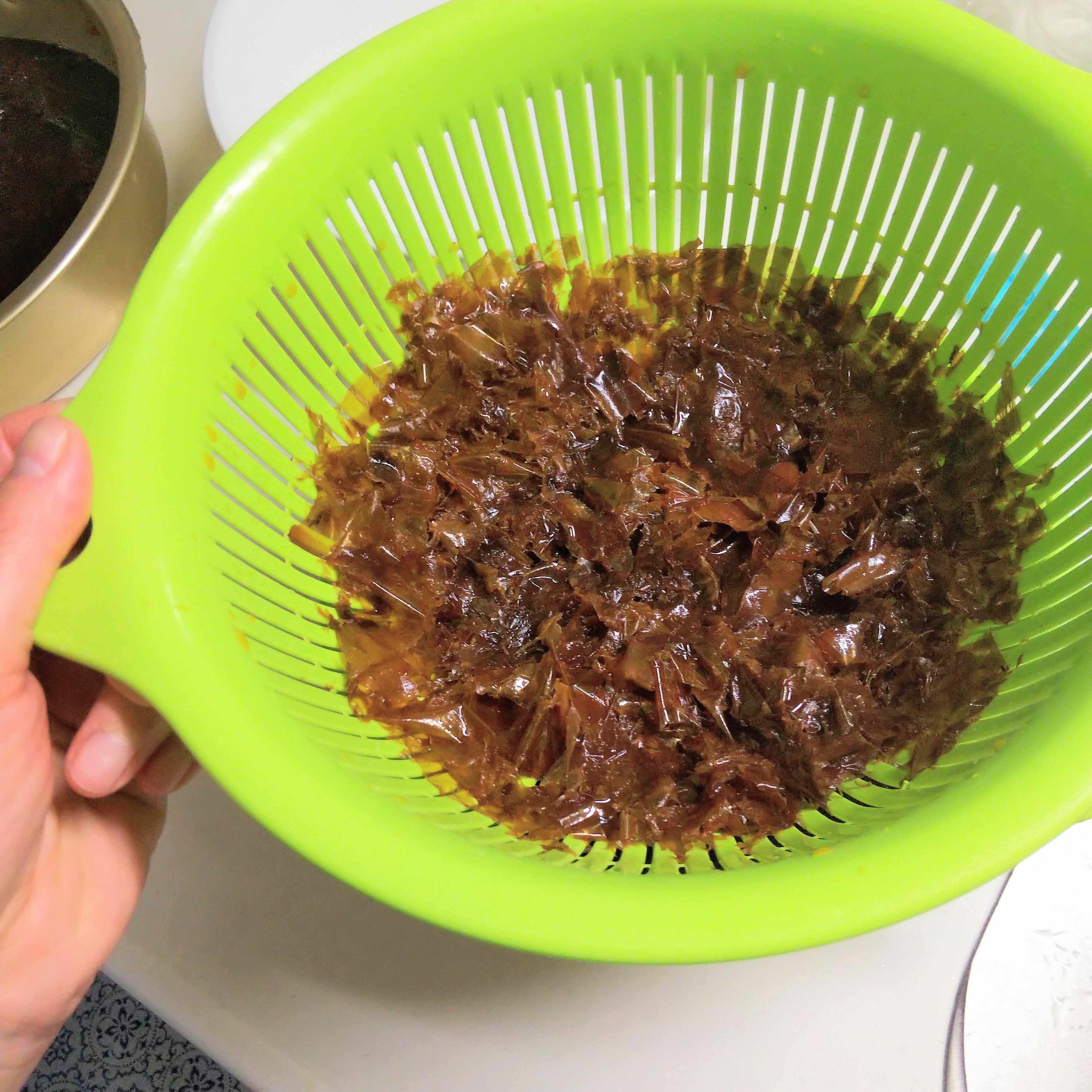 11 1週間経ったらかつおぶしをざるでこして出来上がり!