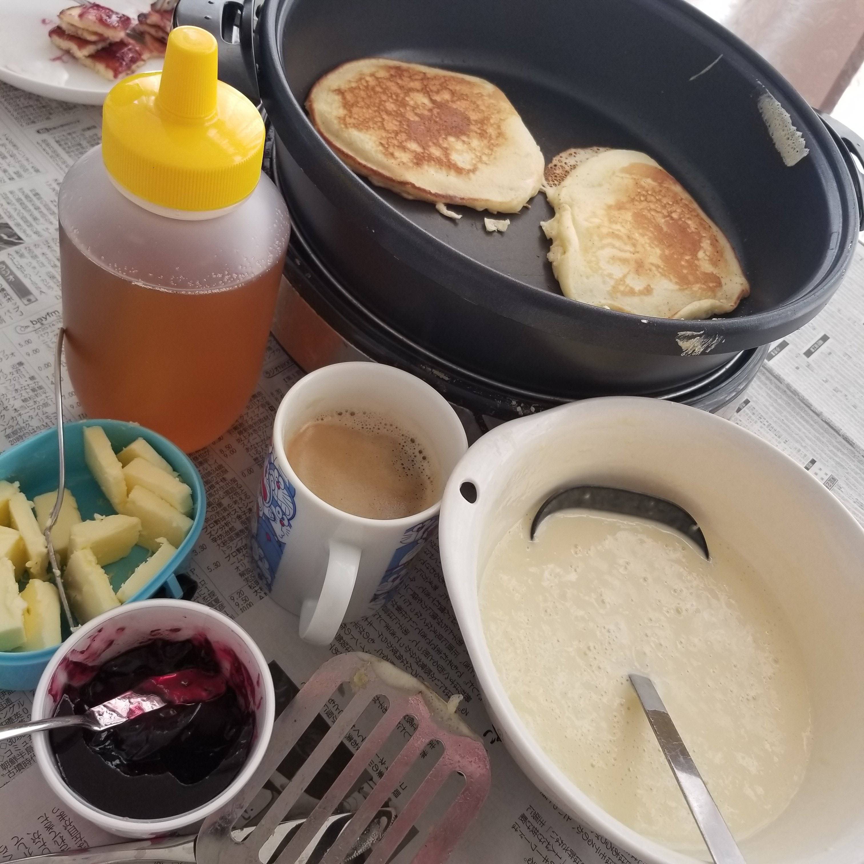 我が家のホットプレートスイーツのど定番、ホットケーキです。あったかいのをすぐ食べられるのが気に入っているので、ホットプレートで焼いています。